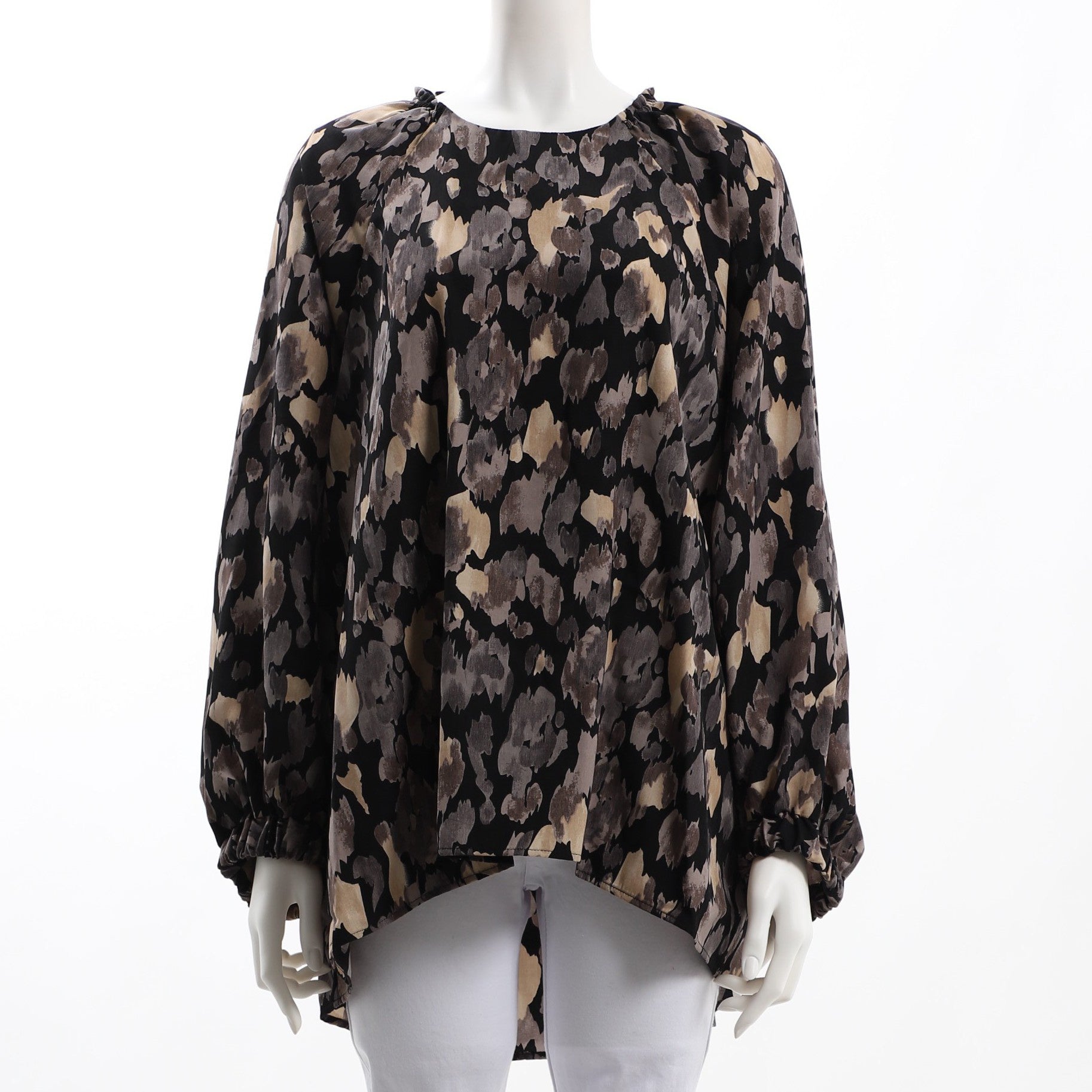 ぼかしレオパード総柄バックテールブラウス