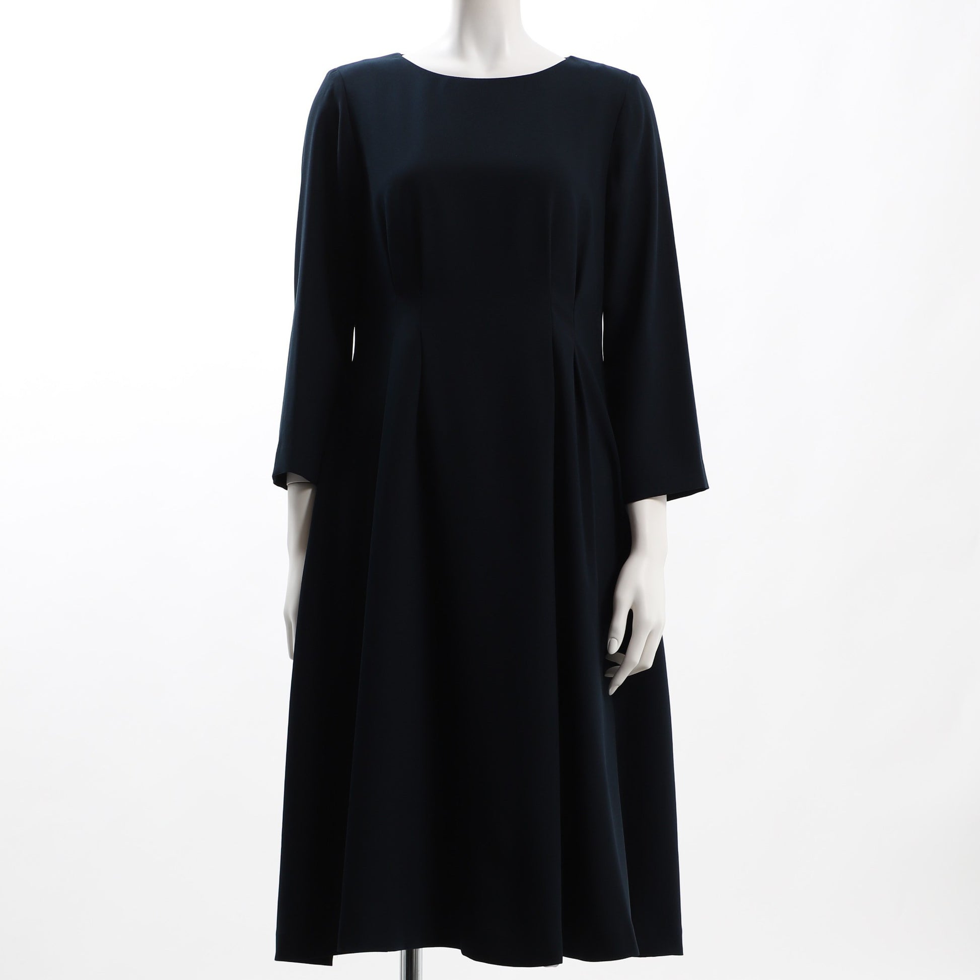 ウエストタックワンピース。レザーのハンドバッグとヒールパンプスを合わせて綺麗めなスタイルに、ショルダーバッグとフラットシューズを合わせてカジュアルスタイルもおすすめです。