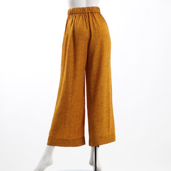 履き心地の楽なバックゴムのワイドパンツ。襟付きのブラウスにパンプスを合わせてきれいめなスタイルに、カットソーにスニーカーを合わせてカジュアルに着こなしても良いですね。