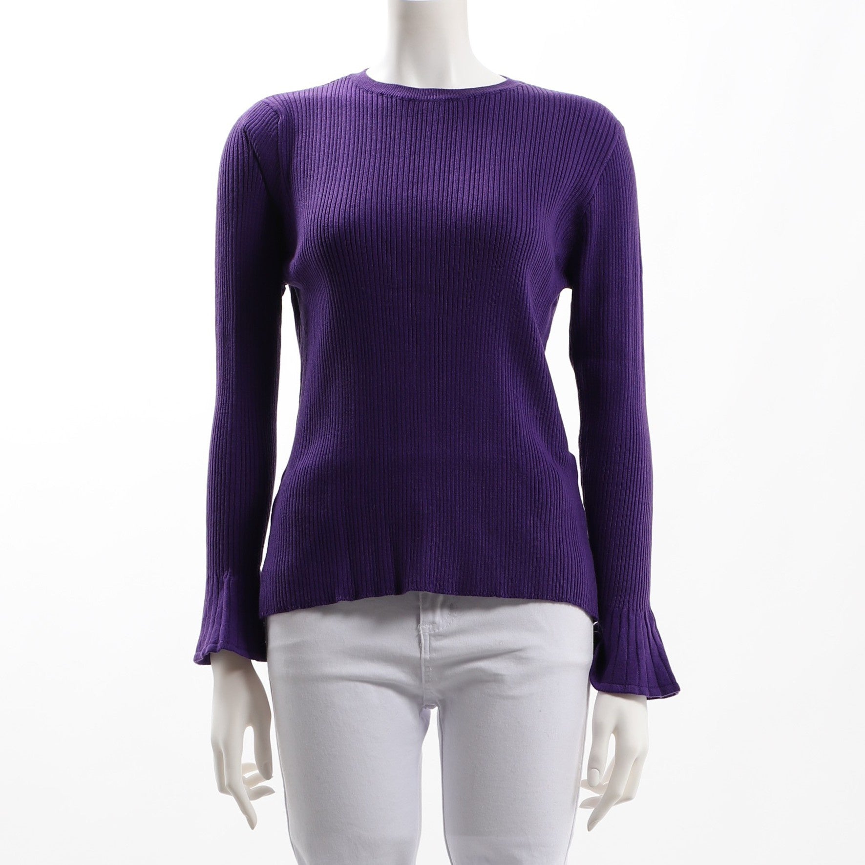 バックボタンやお袖口のデザインがポイントのリブニットです。タイトスカートを合わせてレディライクな着こなしに、ワイドパンツを合わせてラフな着こなしもいいですね。