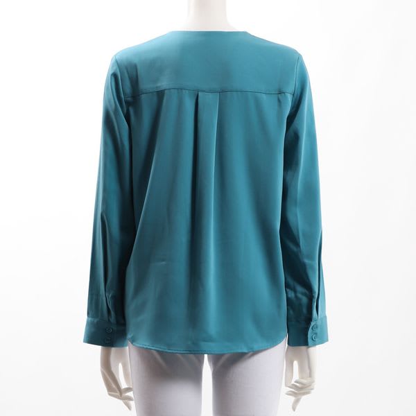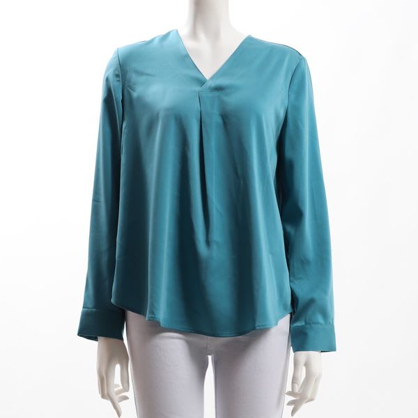 フロントタック入りのVネックブラウスです。センタープレスパンツを合わせてクールな着こなしもいいですし、タイトスカートを合わせて女性らしい着こなしも素敵ですよ。