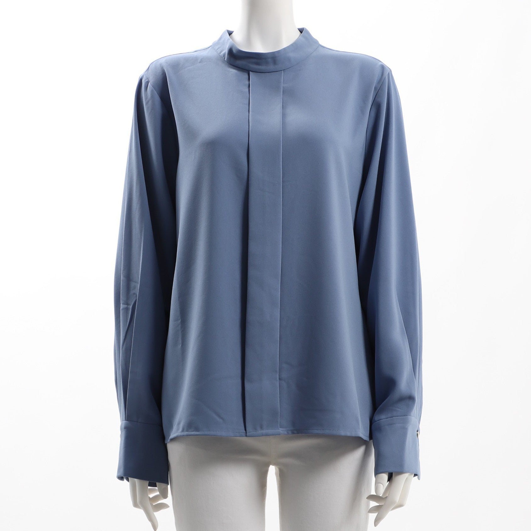 フロントのタックデザインがポイントのスタンドカラーブラウスです。