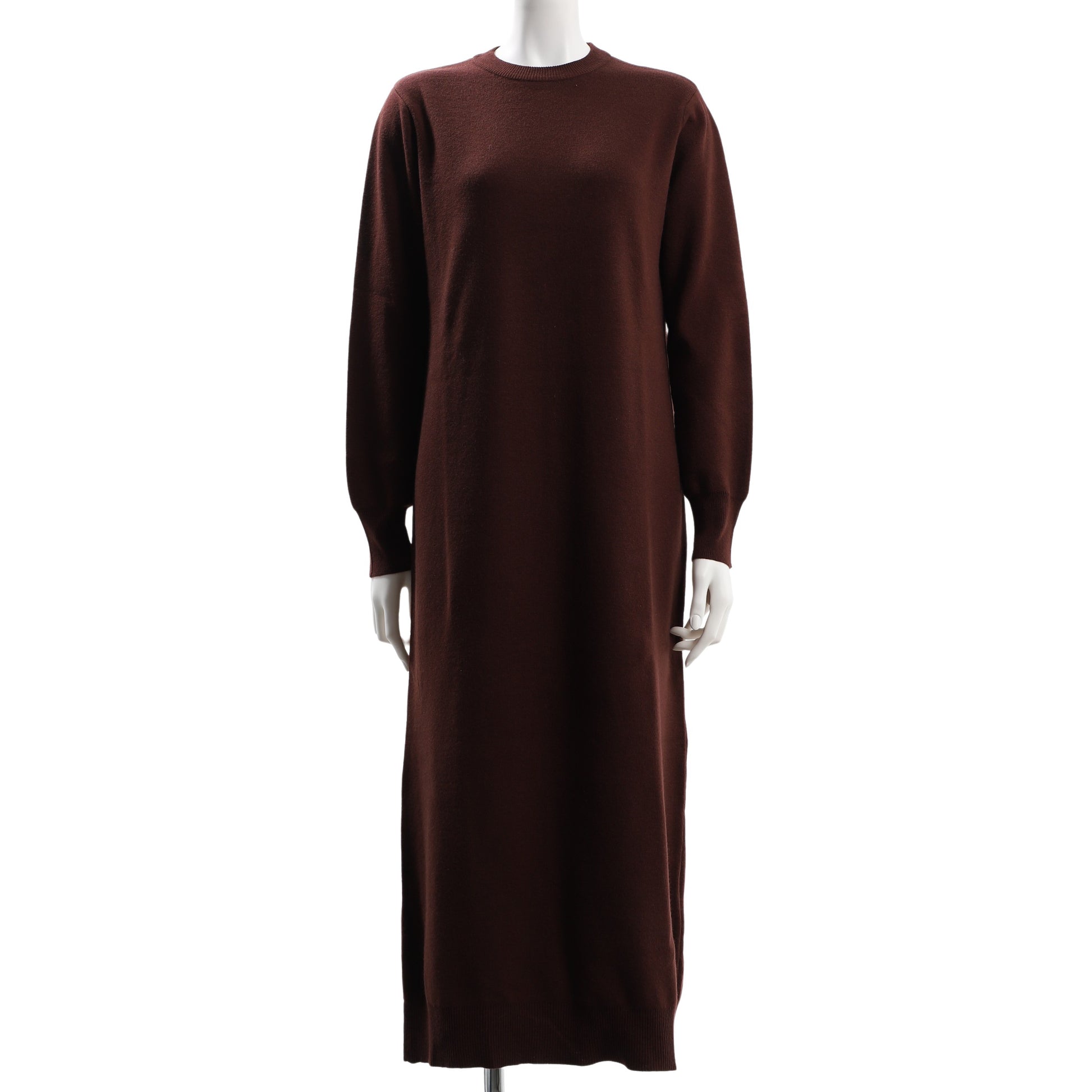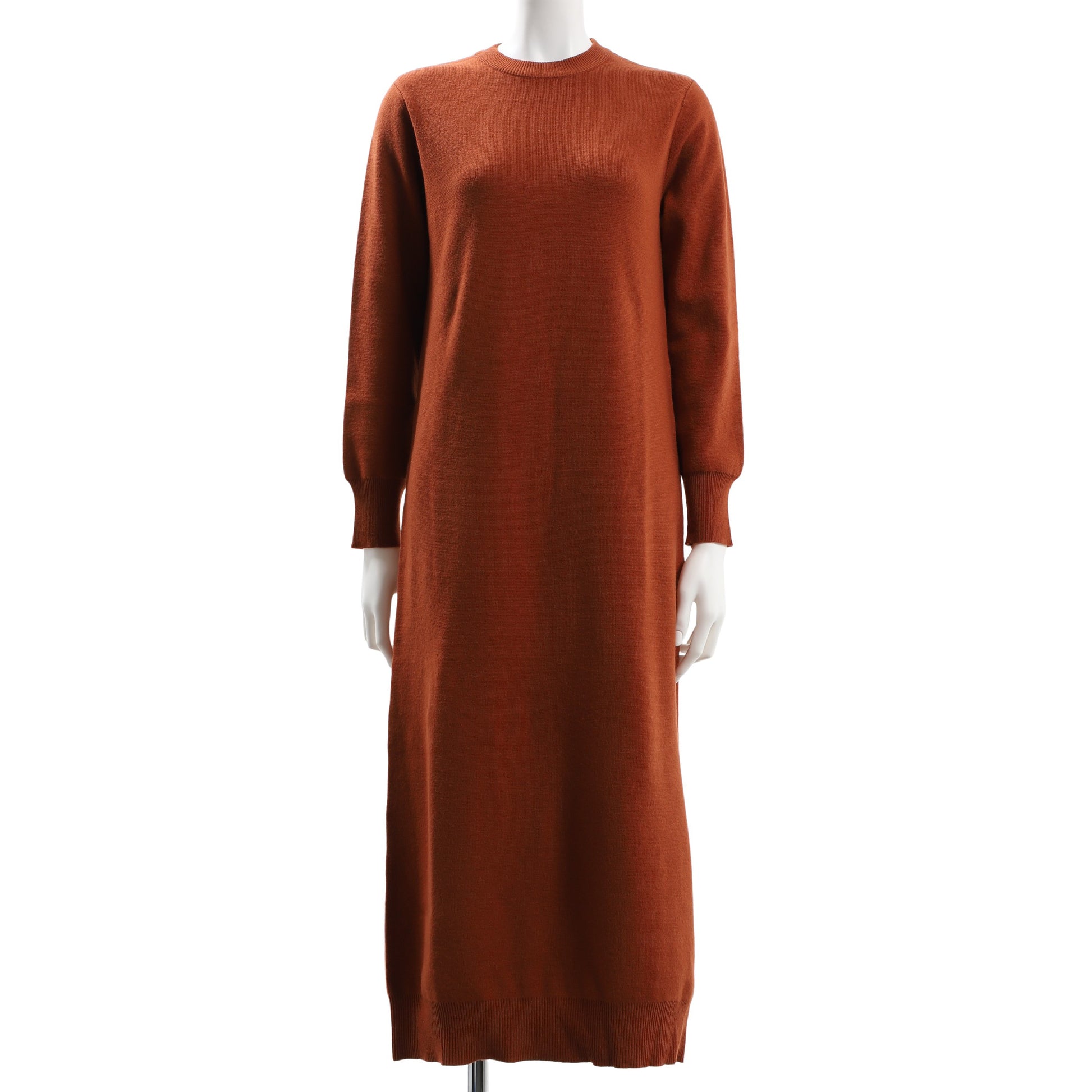 クルーネックのシンプルなニットワンピースです。柔らかくスムースな生地で肌あたりがよく、ニットワンピースなのにフィットしすぎないシルエットが安心感のあるアイテムです。