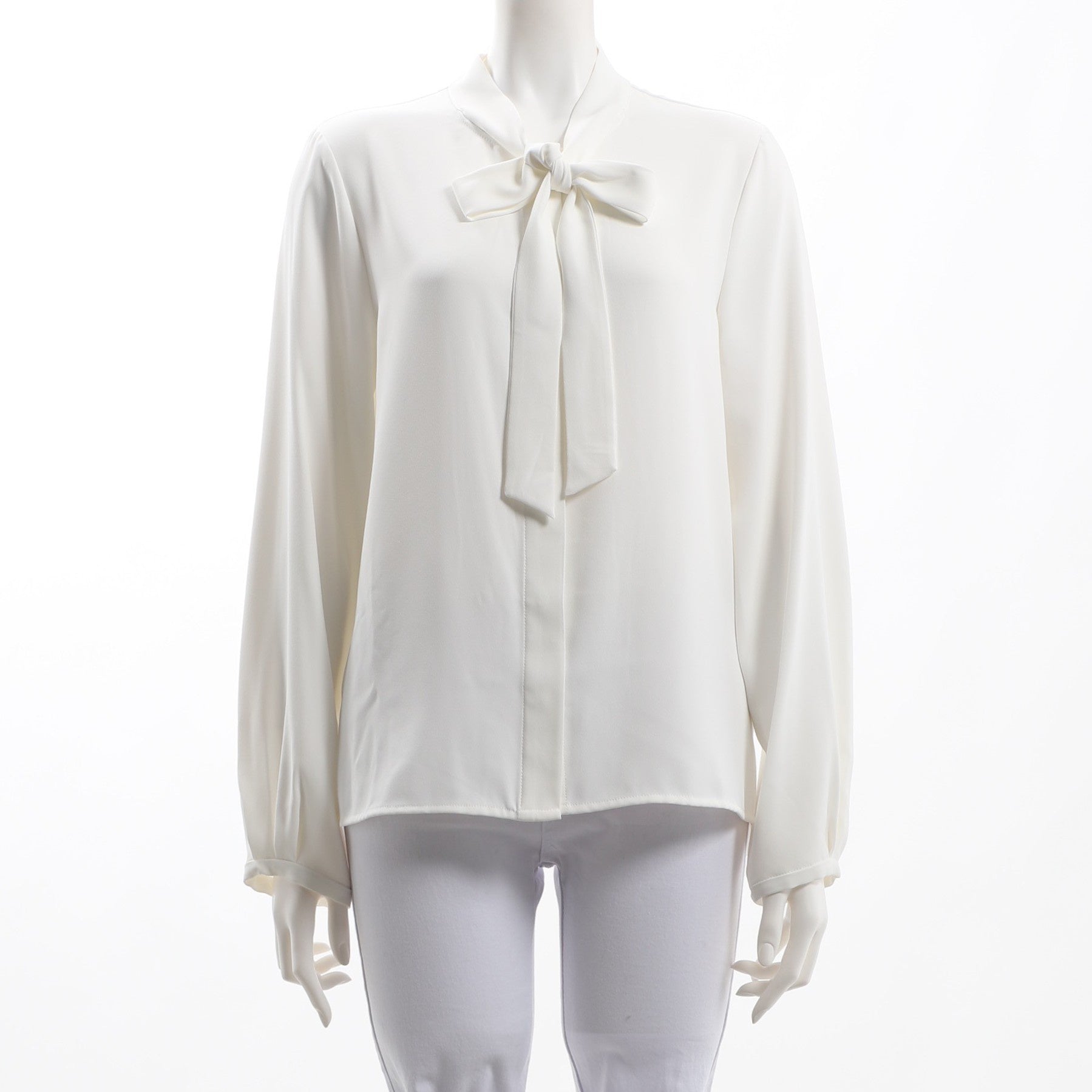 ボウタイデザインのブラウスです。フレアスカートを合わせてフェミニンな着こなしに、テーパードパンツを合わせてスマートな着こなしも素敵ですね。ボウタイはリボン結びや一重に結んでもお楽しみ頂けますよ。