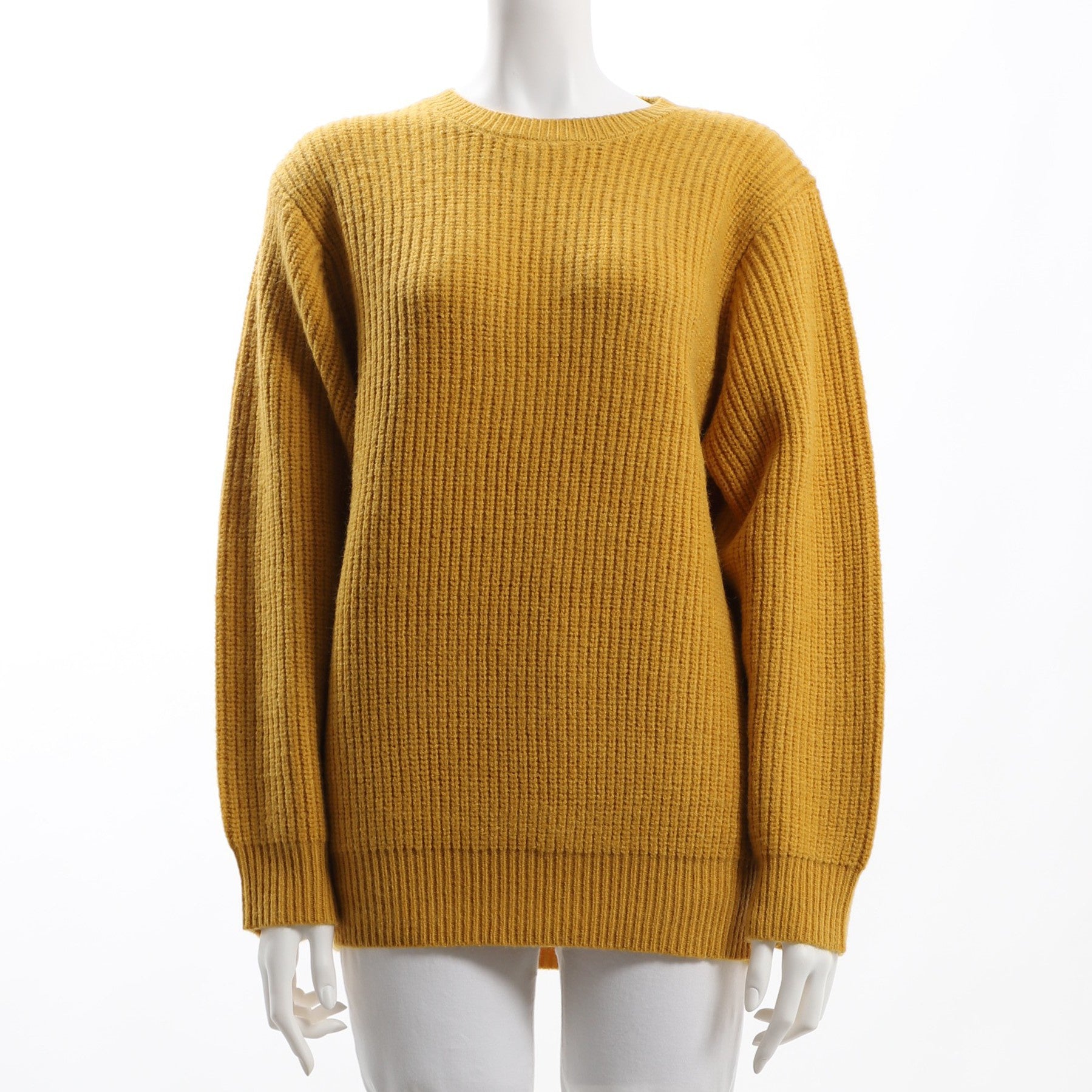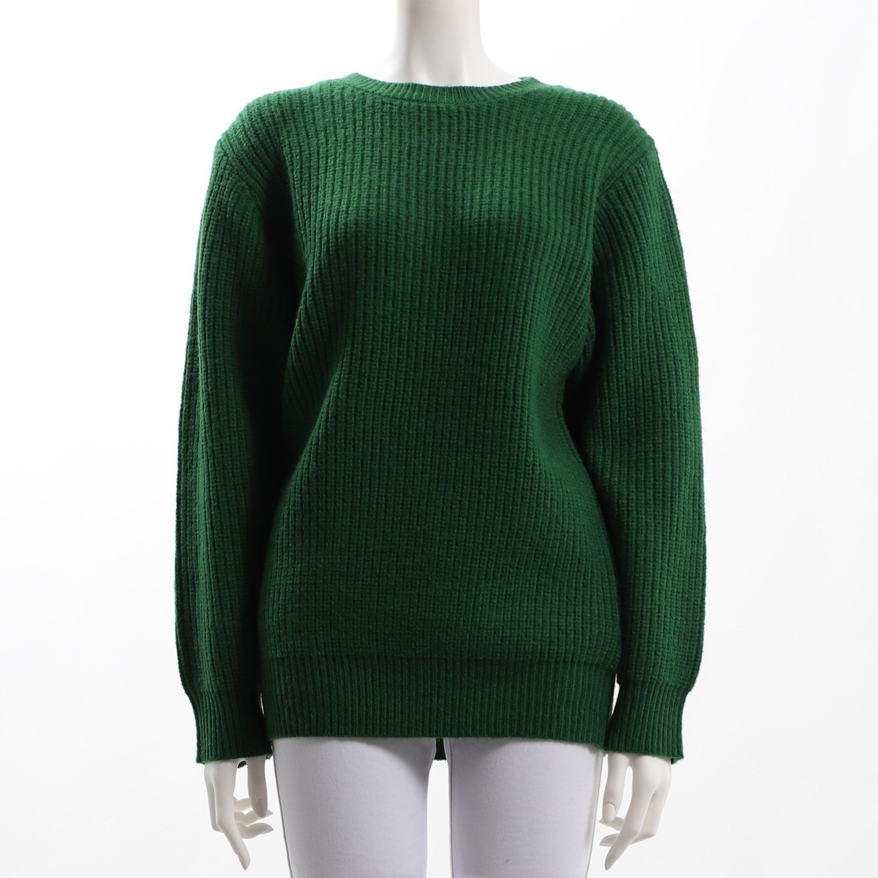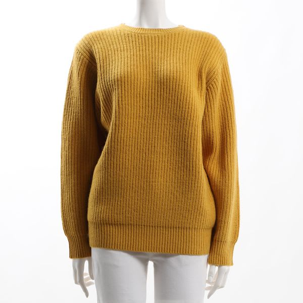 クルーネックのミドルゲージニットです。ワイドパンツを合わせてラフな着こなしに、タイトスカートを合わせてレディライクな着こなしも素敵ですね。