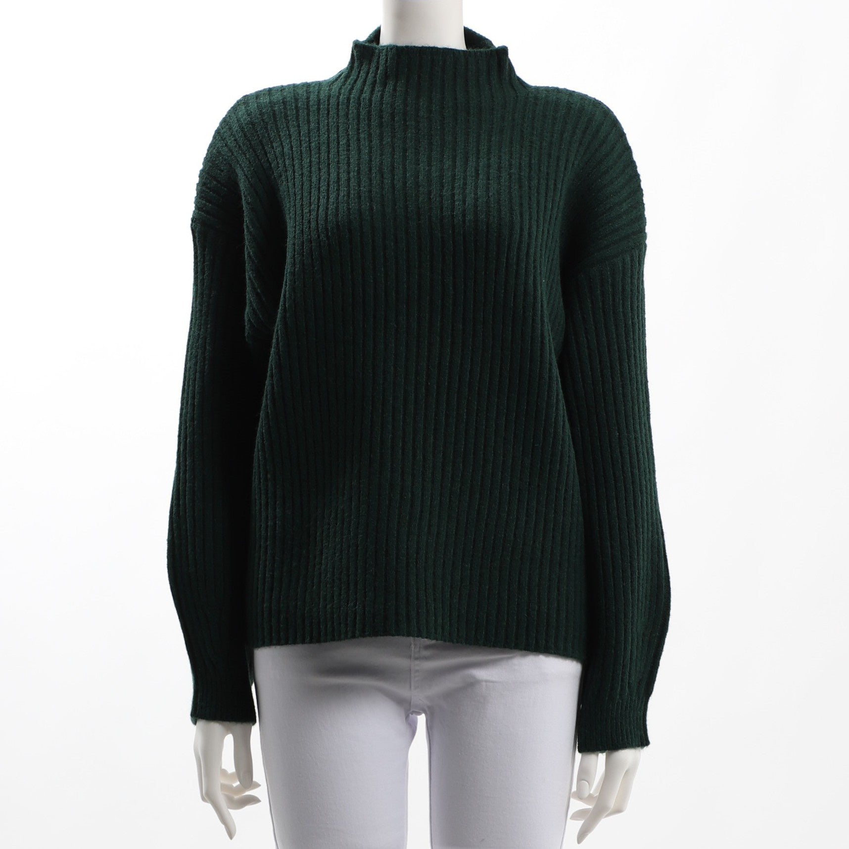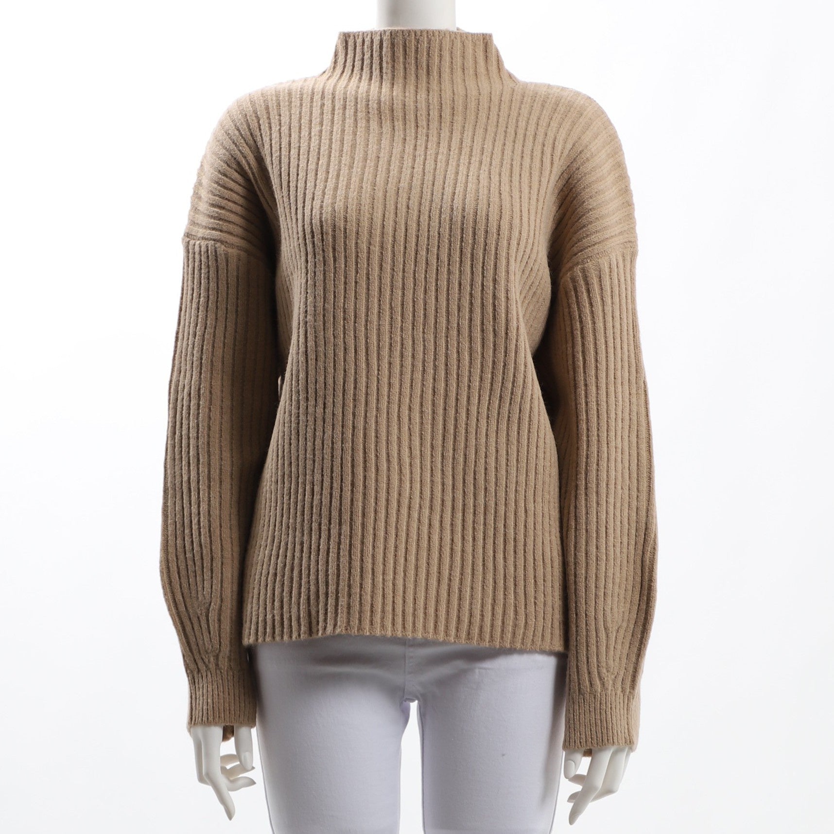 立体感のあるリブが特徴的なニットです。ギャザースカートを合わせて、女性らしいスタイルに。ワイドパンツを合わせて、ラフな印象も素敵ですよ。