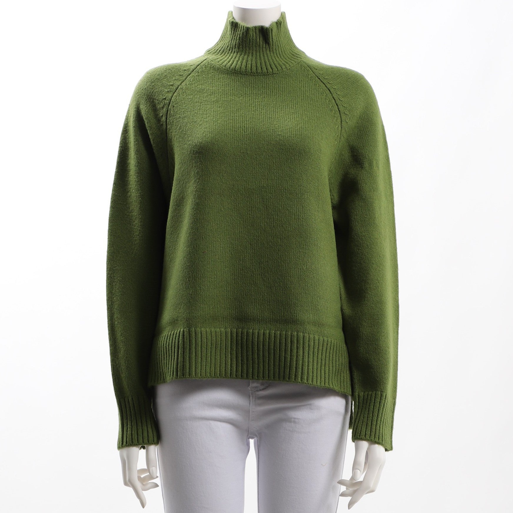 ハイネックのラグランスリーブニットです。テーパードパンツを合わせてスマートな着こなしに、フレアスカートを合わせてレディライクな着こなしも◎ですよ。