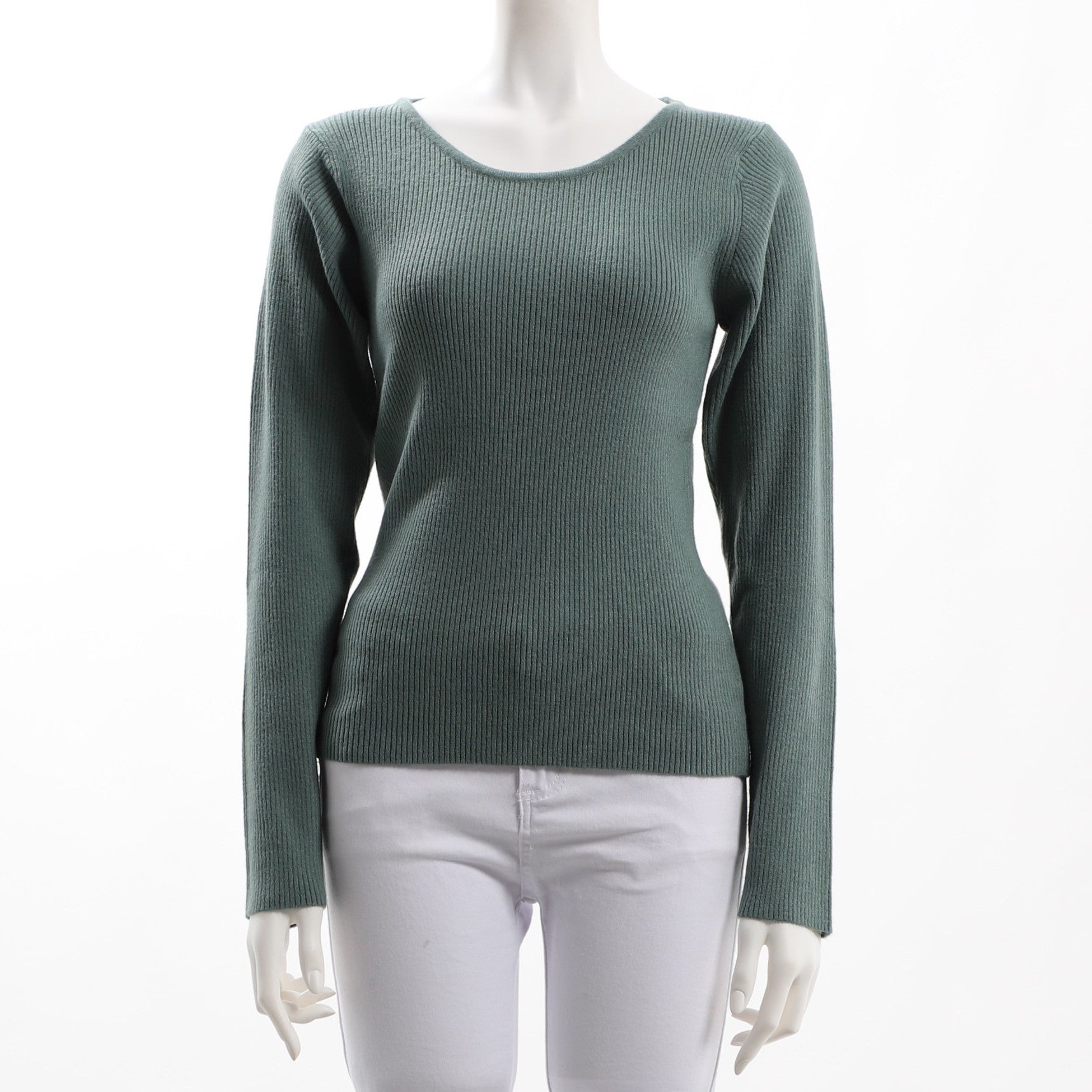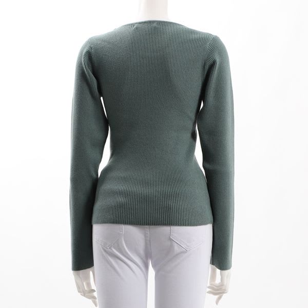 ラウンドネックのリブニット。ボトムスにはワイドパンツを合わせてカジュアルに、フレアスカートでフェミニンに仕上げてもステキです。