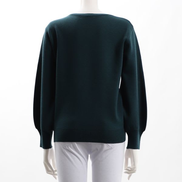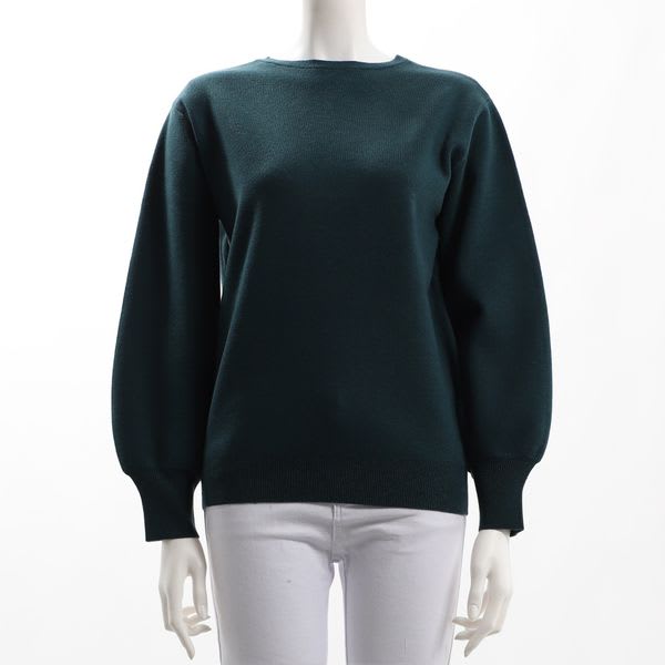 「ニットセーターは、もう少し丈が長めで、ゆったりしたデザインが好みです。グリーンの色は好きです。 プライベートで、着てみました。」
