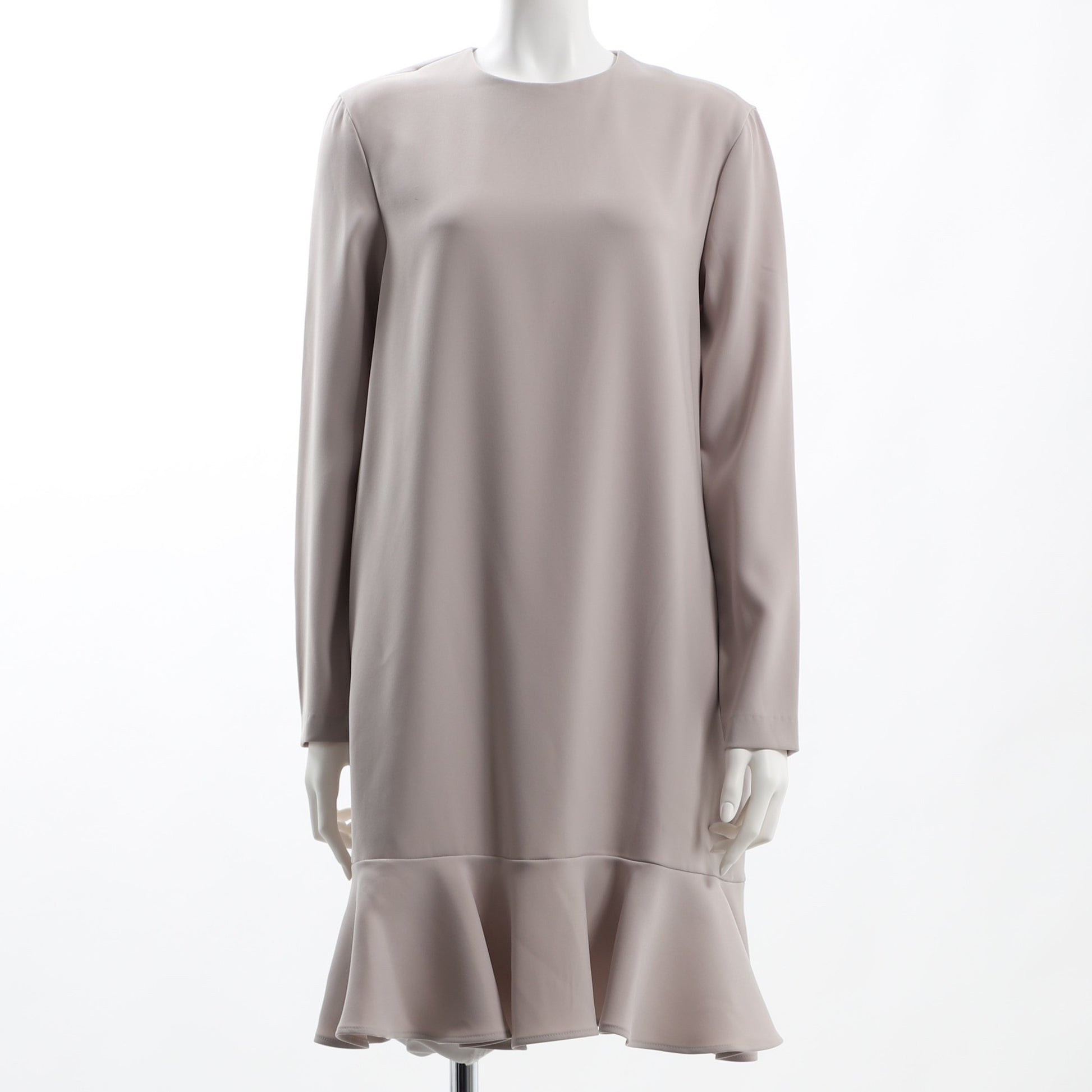 裾の切り替えデザインがポイントのクルーネックワンピース。チェーンショルダーバッグにパンプスを合わせてきれいめに、ポシェットにフラットシューズを合わせてカジュアルめに着こなしても良いですね。