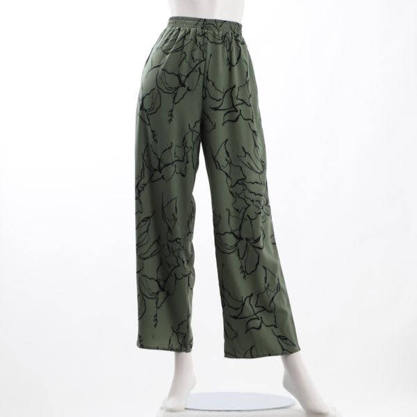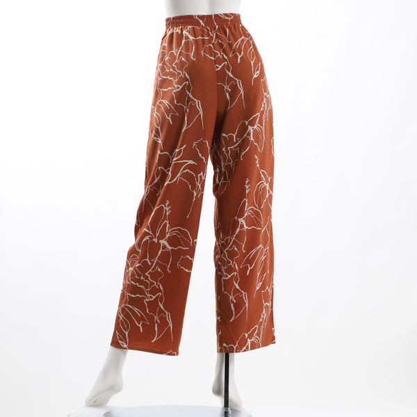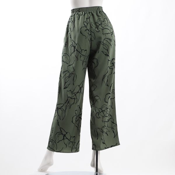 ウエストゴムで履きやすいラインフラワープリントの総柄ストレートパンツ。オーバーサイズカットソーにロングジレと合わせてかっこいい着こなしに、ラッフルスリーブのブラウスを合わせてフェミニンな着こなしもいいですね。