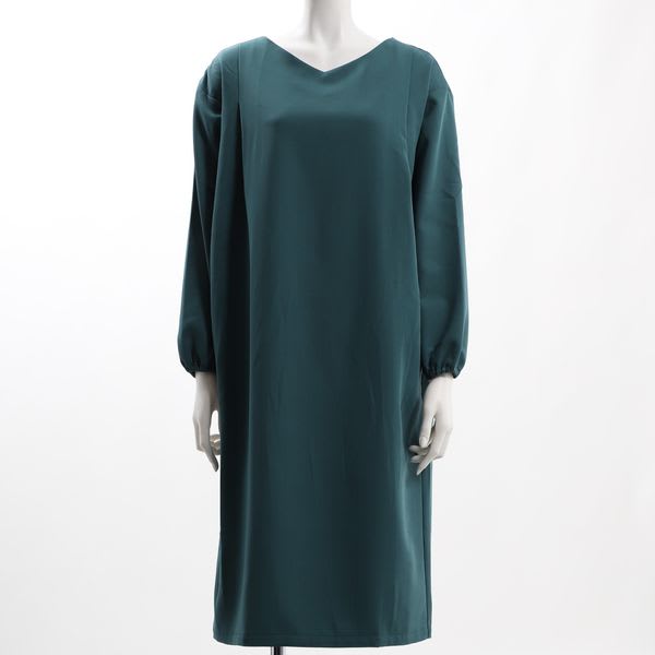 Vネックのドロップショルダーワンピースです。ヒールパンプスを合わせて上品な着こなしに、フラットシューズを合わせてラフな着こなしも素敵ですよ。