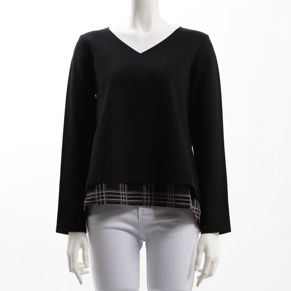 チェック柄アクセントレイヤード風カットソー