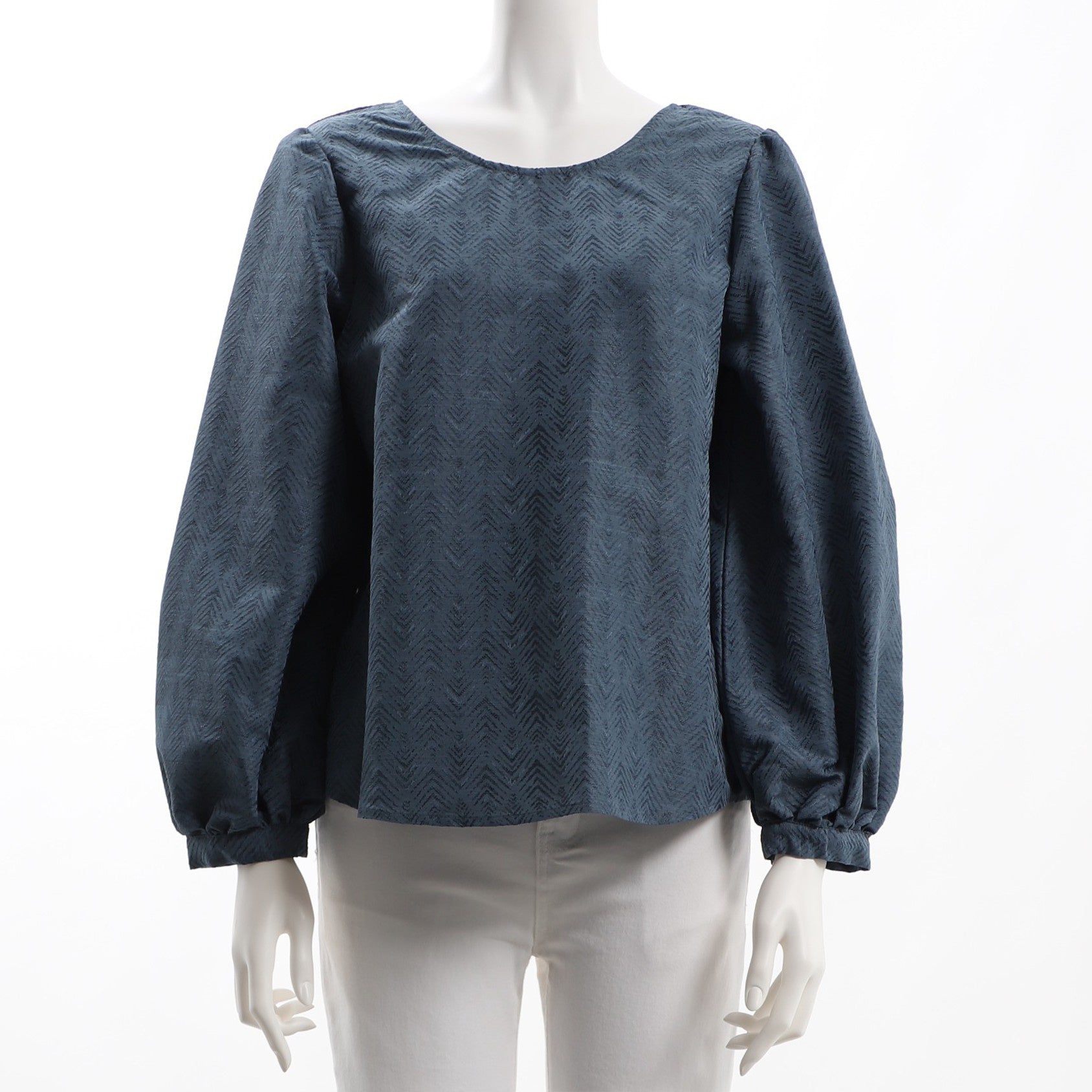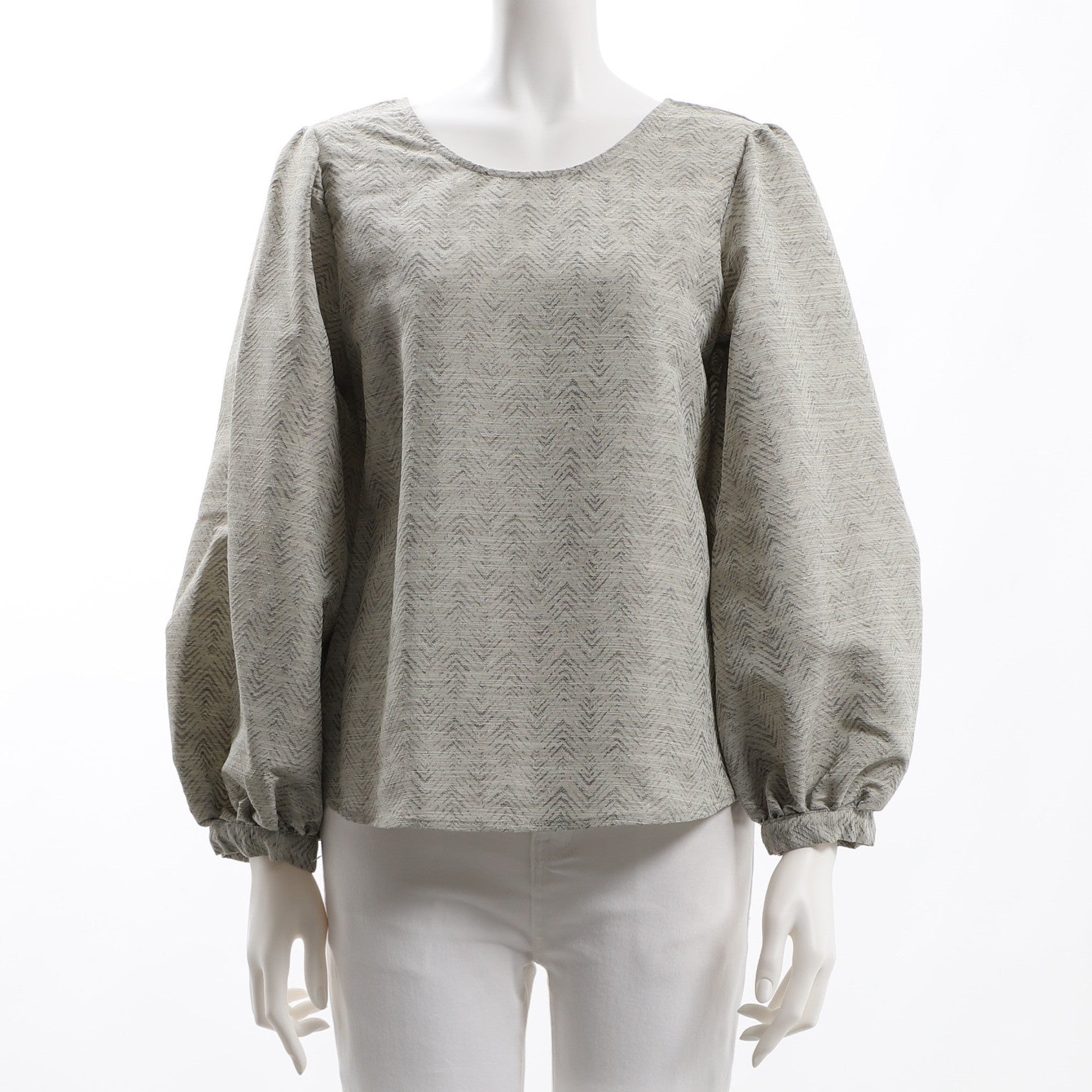 程よいふんわり袖やジャガード生地がポイントの総柄ブラウスです。デニムパンツを合わせてカジュアルな着こなしや、タイトスカートを合わせてレディライクな着こなしもいいですね。