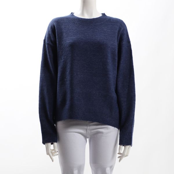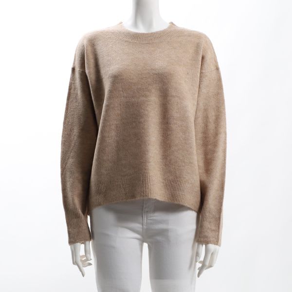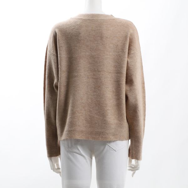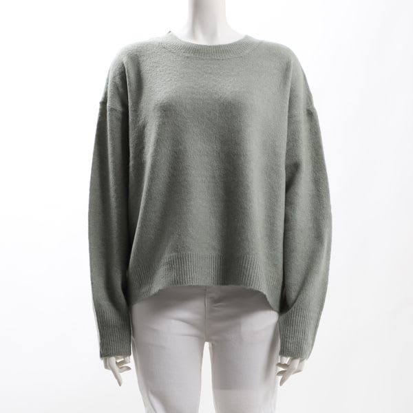 ドロップショルダーのクルーネックニット。テーパードパンツにローファーを合わせてきれいめに、ギャザースカートにスニーカーを合わせてカジュアルに仕上げても良いですね。