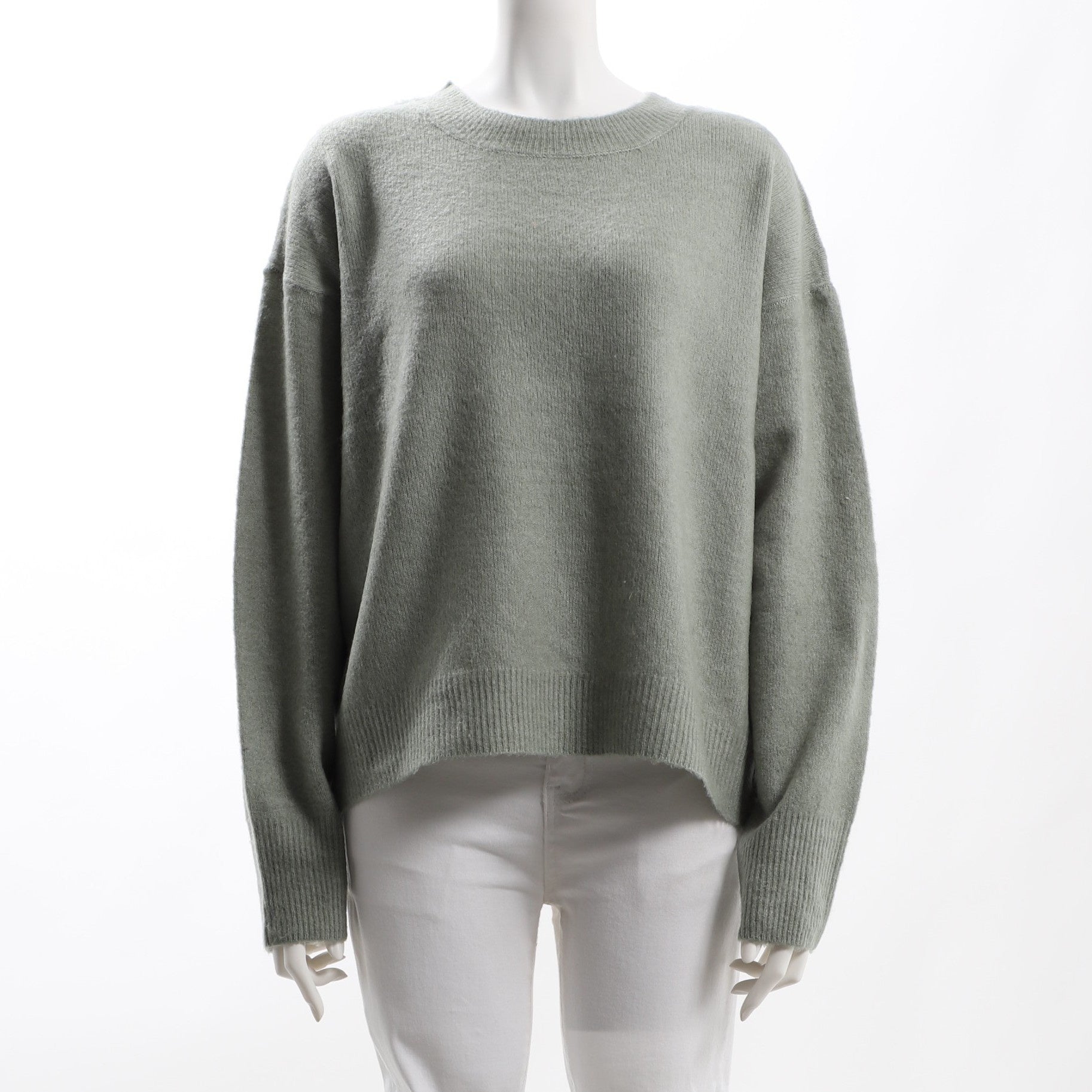 ドロップショルダーのクルーネックニット。テーパードパンツにローファーを合わせてきれいめに、ギャザースカートにスニーカーを合わせてカジュアルに仕上げても良いですね。