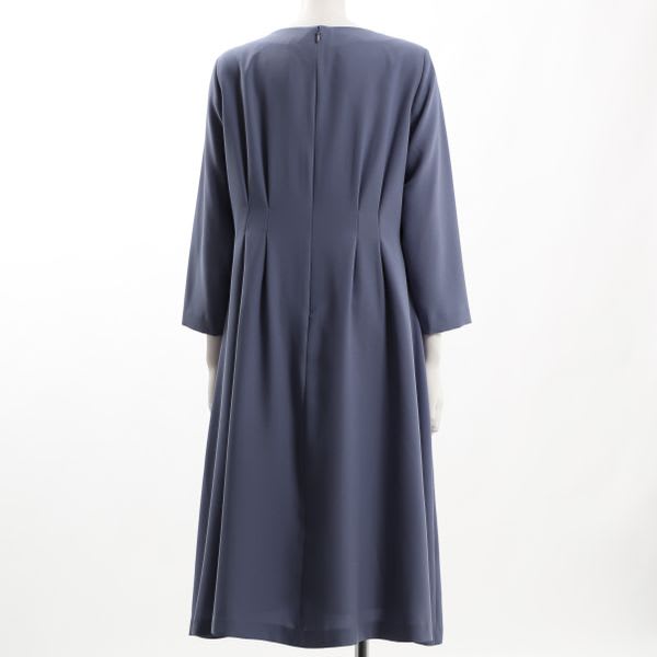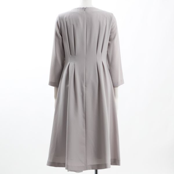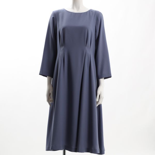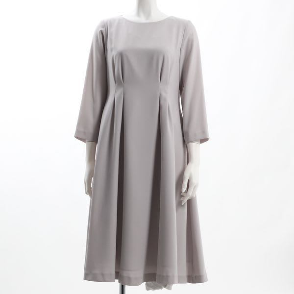 ウエスト部分のタックデザインがポイントのワンピース。パテントパンプスにハンドバッグで上品に、バレエシューズにショルダーバッグでカジュアルめに着こなしても良いですね。