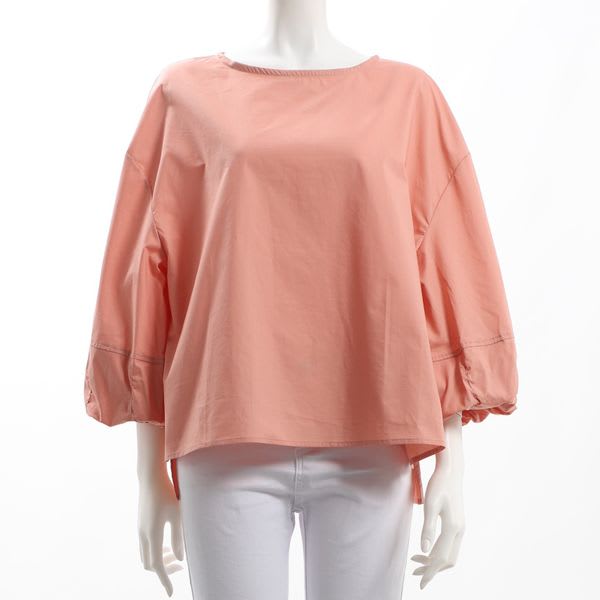 ドロップショルダーのバルーンスリーブブラウス。ギャザースカートを合わせてフェミニンな着こなしに、スキニーパンツを合わせて甘辛mixな着こなしも素敵です。