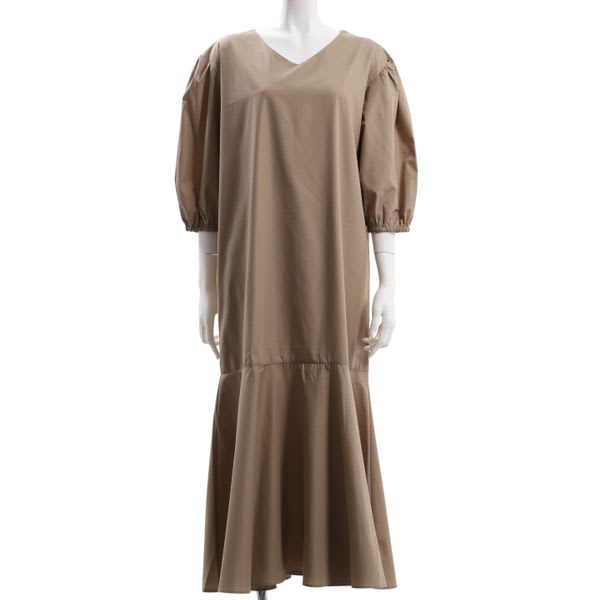 ふんわりとしたお袖と裾の切り替えデザインがポイントのVネックワンピースです。
