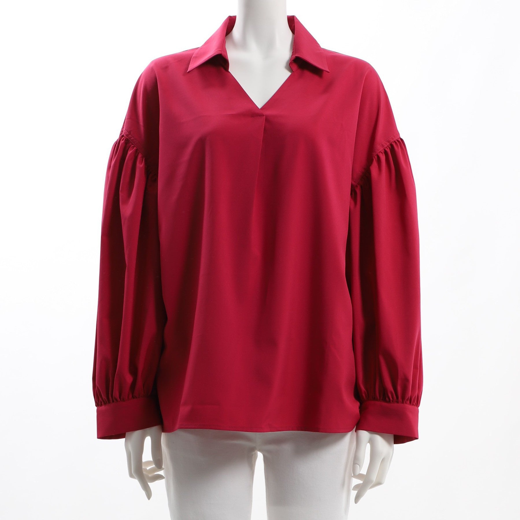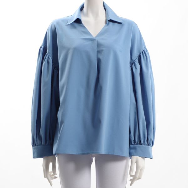 ドロップショルダーとボリューム袖のスキッパーブラウス。
