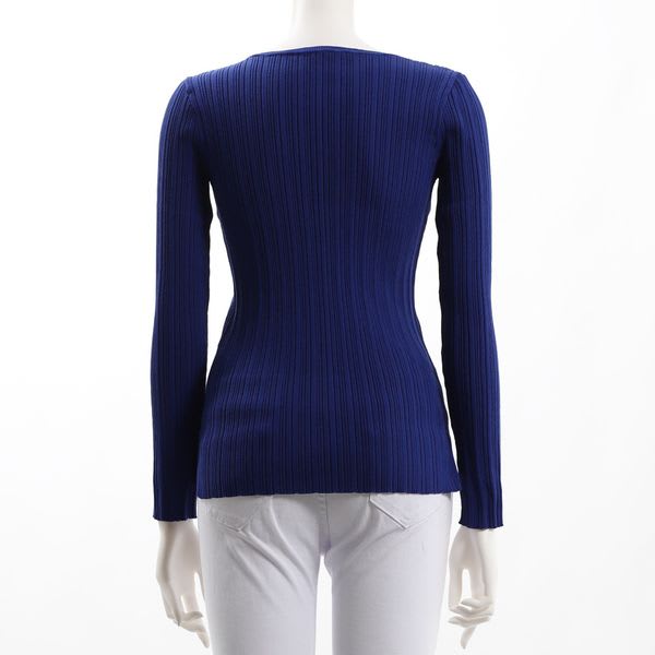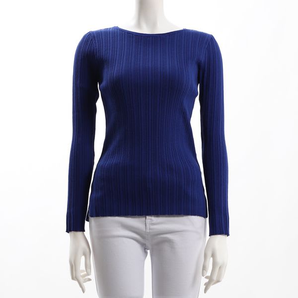 ボートネックのリブニットです。ボトムスにはフレアスカートを合わせてフェミニンに、ワイドパンツでカジュアルに仕上げても良いですね。