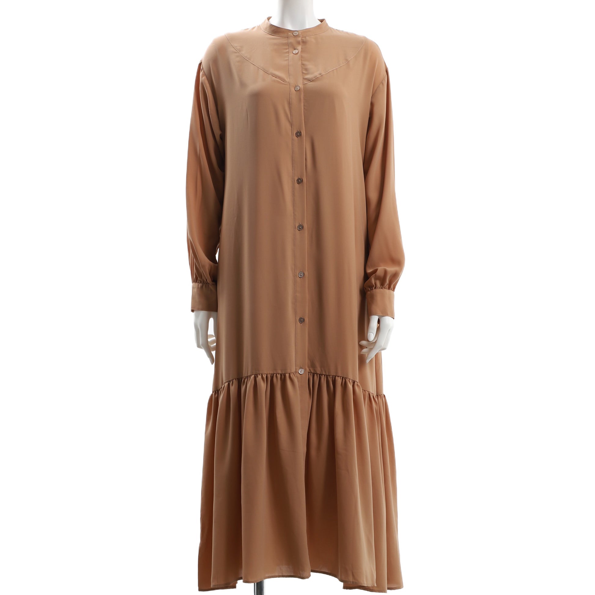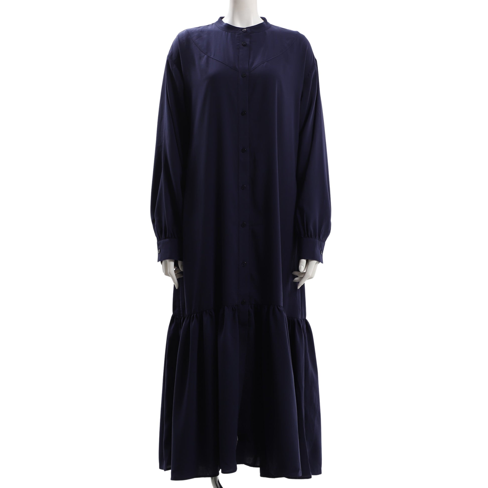 バンドカラーのティアードワンピースです。 レギンスや柄物のワイドパンツを合わせたレイヤードスタイルなどもおすすめです。
