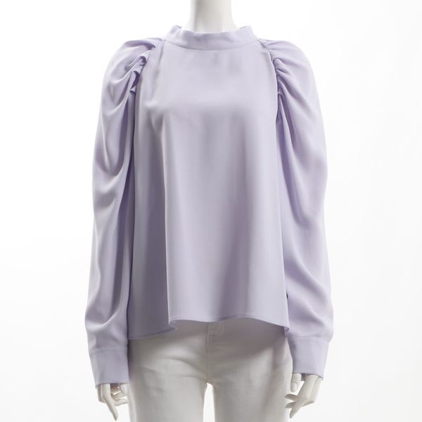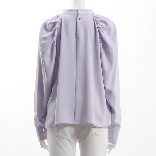 お袖のデザインがポイントのスタンドカラーブラウスです。フレアスカートとパンプスを合わせて上品なスタイルや、ワイドパンツとフラットシューズを合わせてカジュアルにまとめていただいてもいいですね。