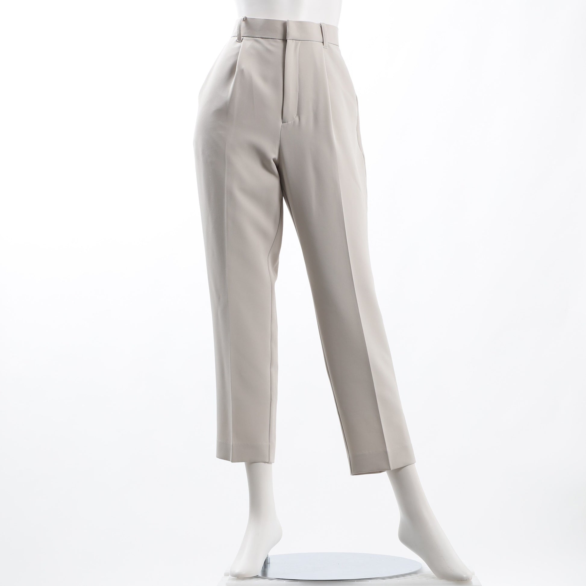 タック入りのテーパードパンツ。スキッパーブラウスとポインテッドトゥパンプスを合わせてスタイリッシュなスタイルに、ボウタイブラウスとラウンドパンプスを合わせて女性らしいスタイルも素敵ですよ。