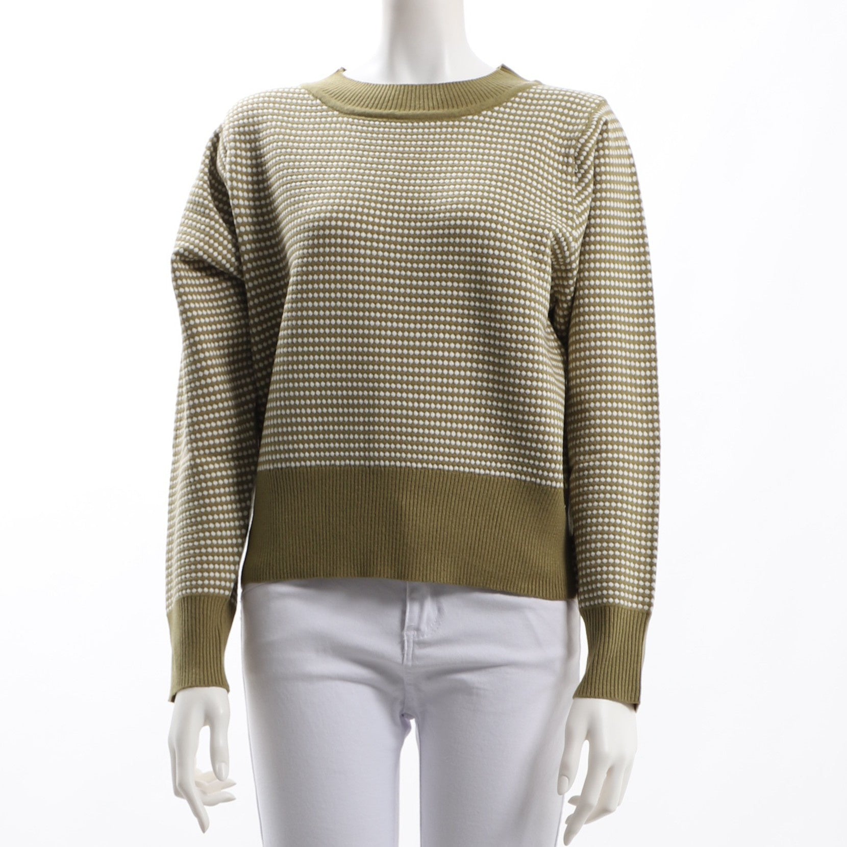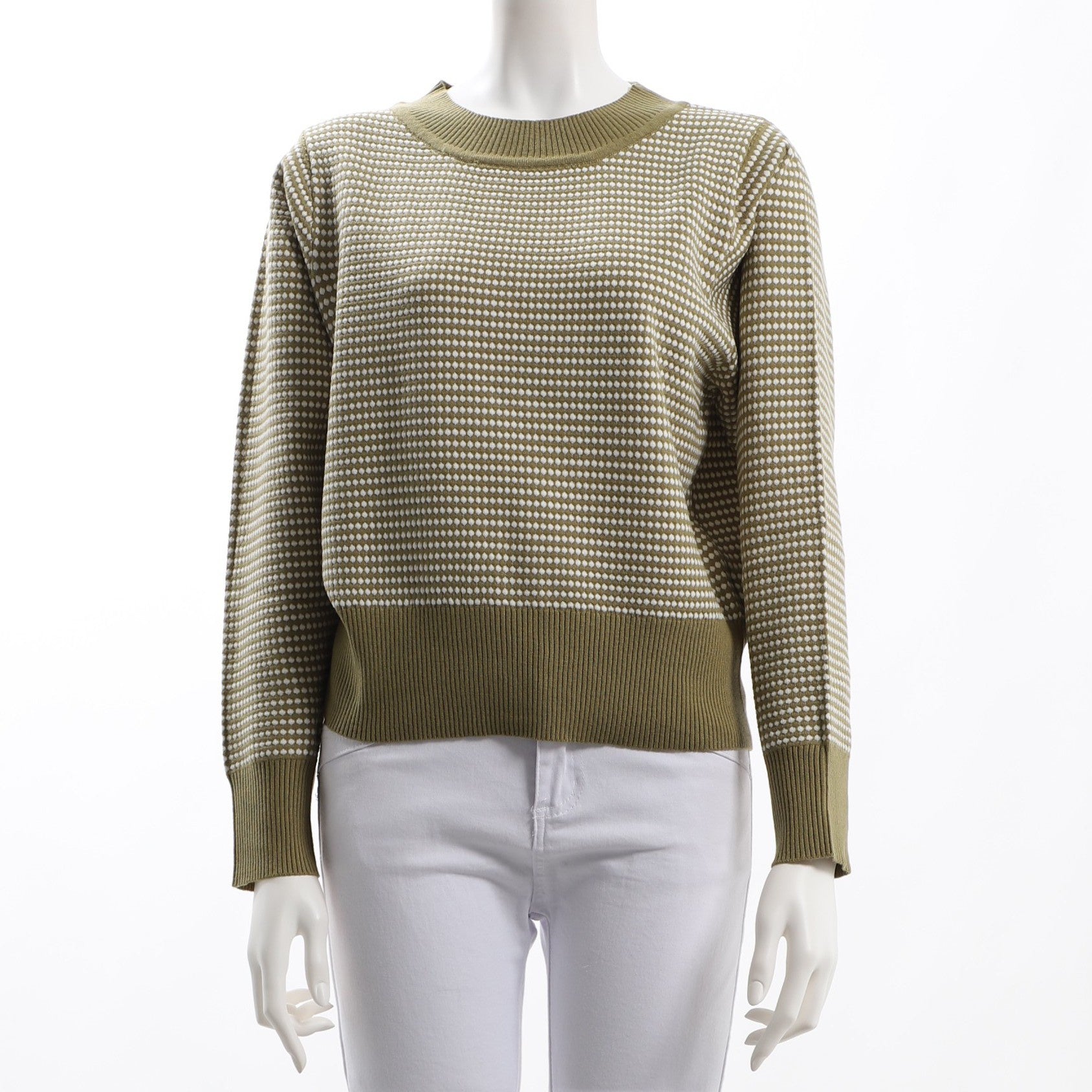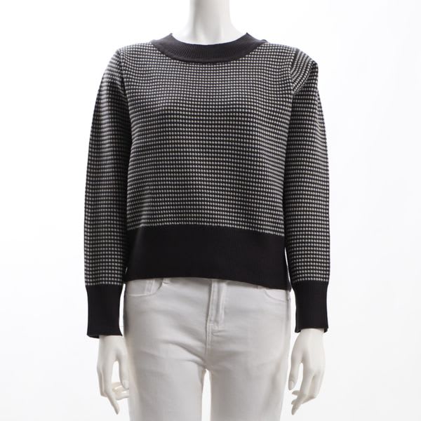 編み柄リブクルーネックニット