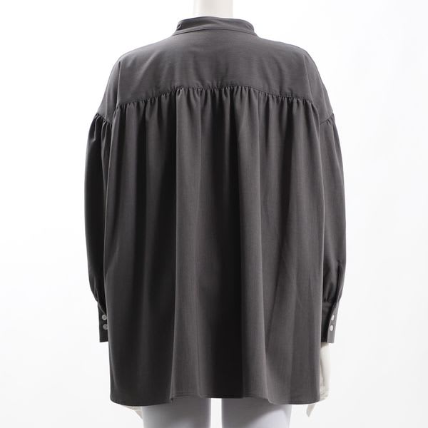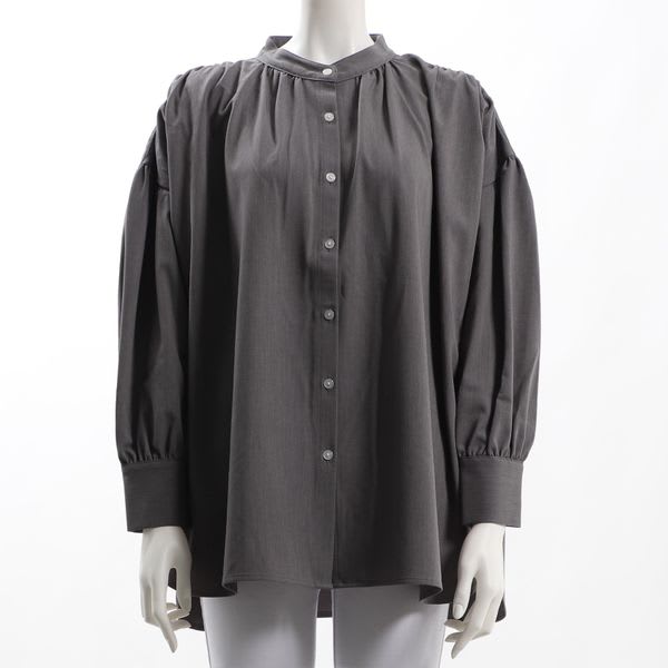 お袖やバックのギャザーデザインがボリューム感のあるブラウスです。センタープレスのテーパードパンツを合わせて、きれいめなスタイルに。デニムパンツを合わせて、カジュアルな仕上がりも素敵ですね。