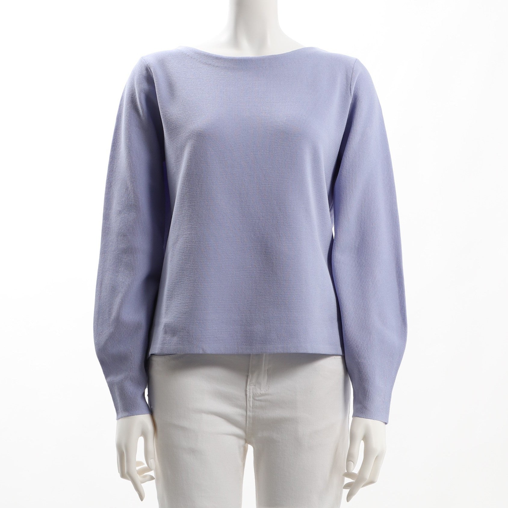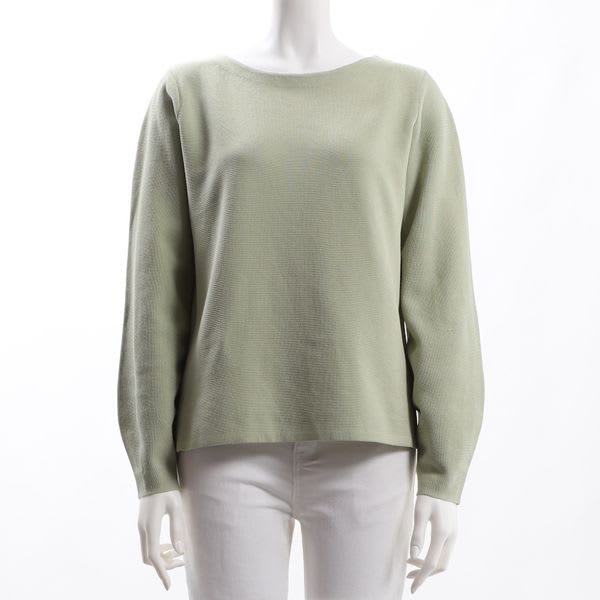 すっきりシンプルなボートネックニットです。フレアスカートにパンプスを合わせてきれいめに、デニムパンツにスニーカーを合わせてカジュアルに着こなしても良いですね。
