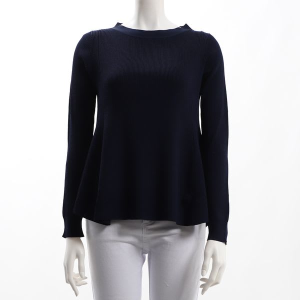 ふわっと広がった裾が特徴のクルーネックニット。タイトスカートにパンプスを合わせてきれいめに、デニムパンツにスニーカーを合わせてカジュアルに着こなしても良いですね。