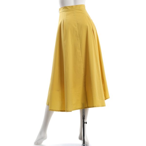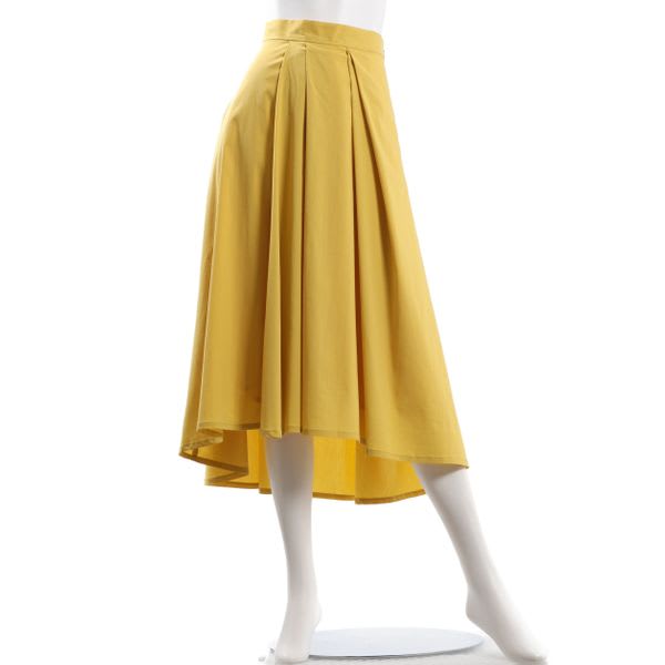 バックテールのタックフレアスカート。トップスにはボーダー柄カットソーを合わせてラフに、ラウンドネックのとろみブラウスで品よくまとめてもいいですね。