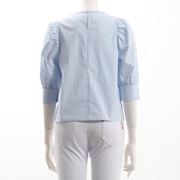 パフスリーブがポイントのコットンブラウス。チュールスカートを合わせてフェミニンな着こなしに、デニムパンツを合わせてマニッシュに着こなすのもいいですね。