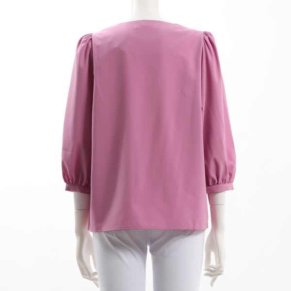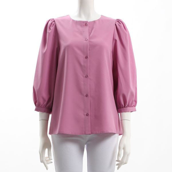 パフスリーブの前開きブラウス。フレアスカートとラウンドパンプスを合わせてフェミニンスタイルに、デニムパンツとフラットシューズを合わせてカジュアルスタイルもいいですね。