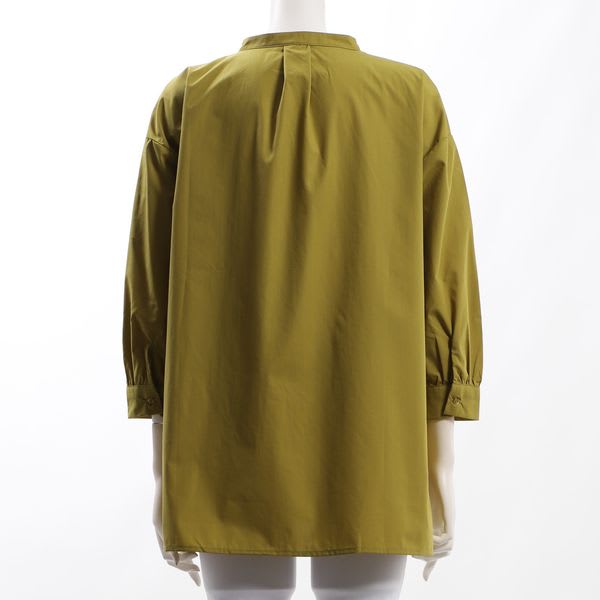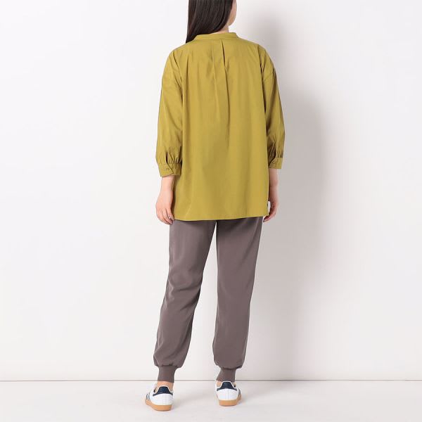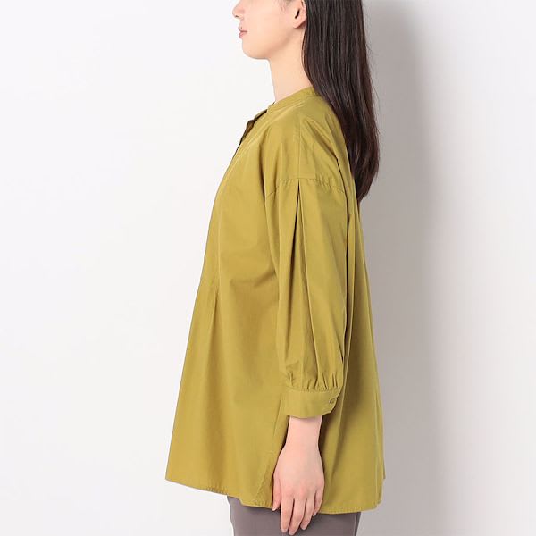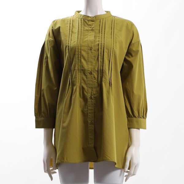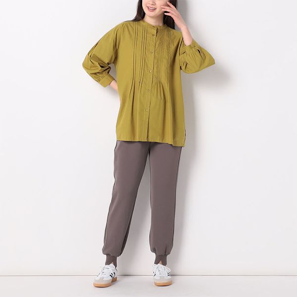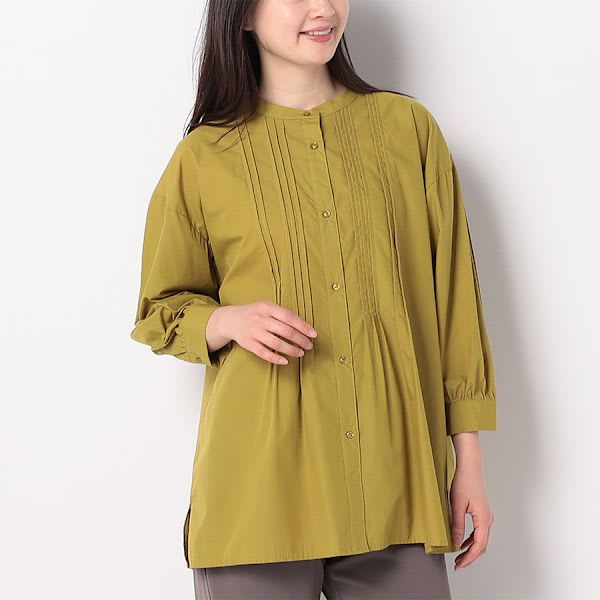 ピンタックがポイントの前開きバンドカラーシャツ。タイトスカートを合わせてきれいめな着こなしに、デニムパンツを合わせてカジュアルに着こなすのもおすすめです。