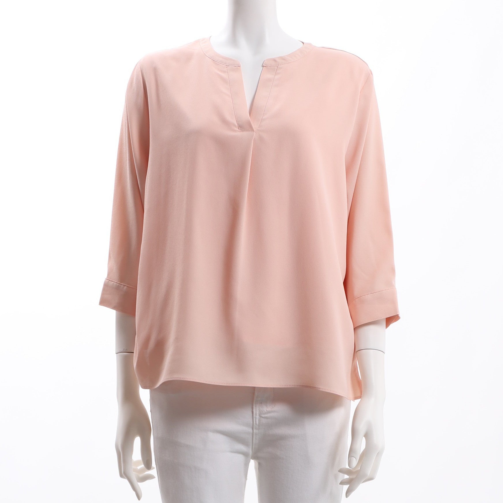 サイドスリット入りのオープンフロントネックブラウスです。テーパードパンツとパンプスを合わせてキレイめスタイルや、ロングギャザースカートとフラットシューズを合わせてカジュアルなスタイルも素敵ですよ。