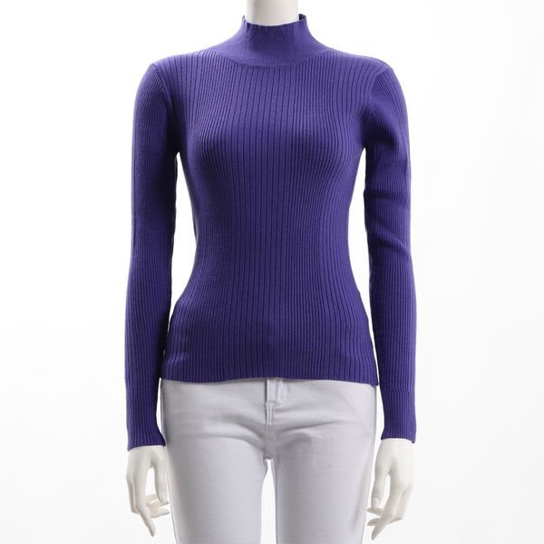ランダムリブのハイネックニットです。ストレートパンツとパンプスを合わせてスタイリッシュなスタイルや、ロングギャザースカートとスニーカーを合わせてカジュアルなスタイルもいいですね。