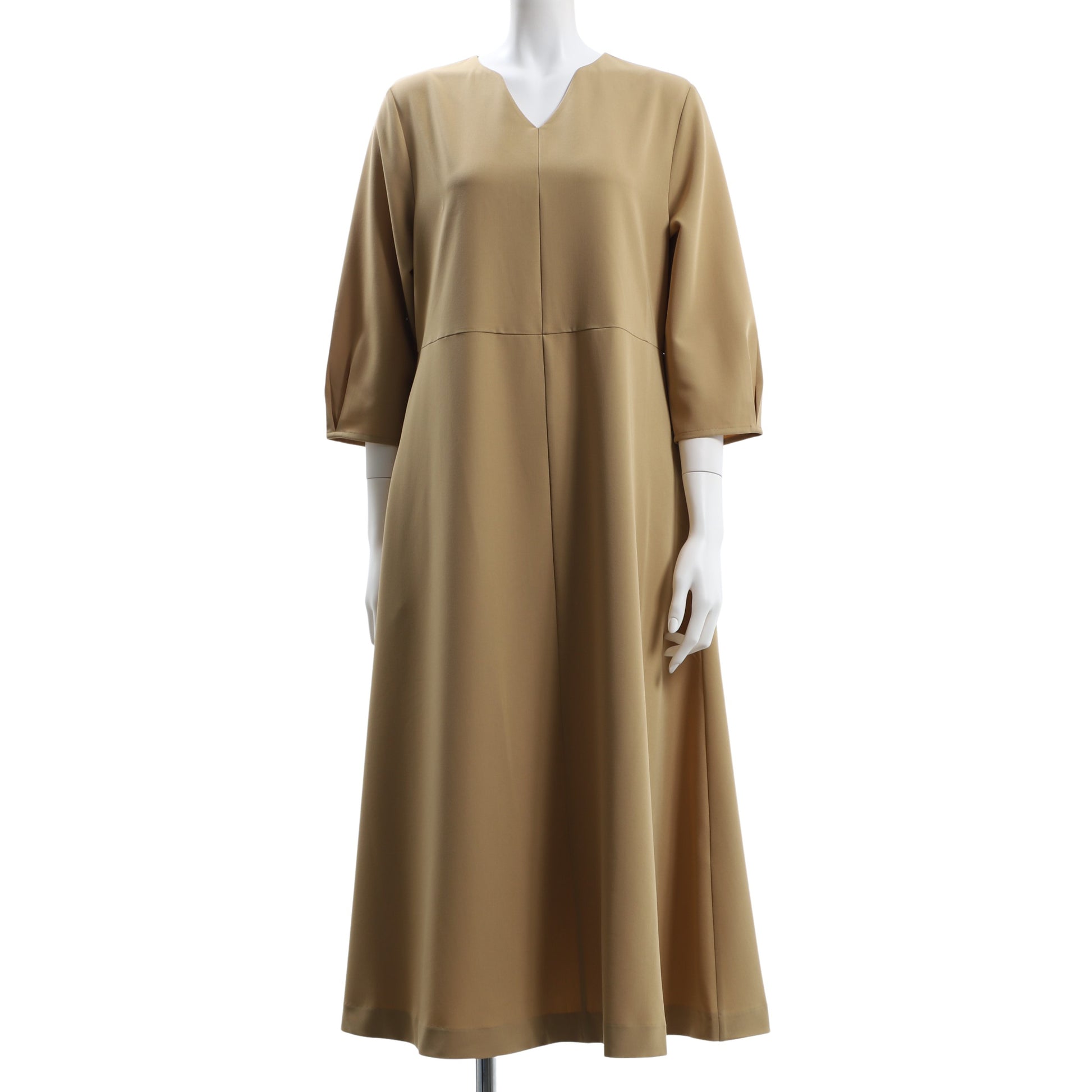 ふんわりとしたお袖がポイントのオープンフロントネックワンピースです。トートバッグとスニーカーを合わせてカジュアルなスタイルや、ハンドバッグとパンプスを合わせて上品なスタイルも素敵ですよ。