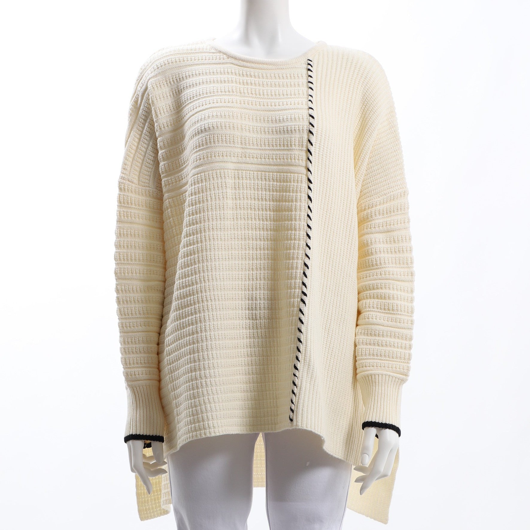 「◯な所・リクエスト通りのゆるっとしたシルエットがいい感じでした!・ニットの網目も切替があったり、あんまり見ない立体感で可愛かった・オフホワイトは好きな色なので、着やすかったです!差し色の黒が効いてました!・全体的な雰囲気もカジュアルな感じが好みでした!」