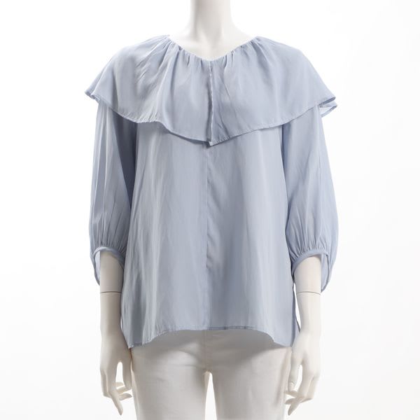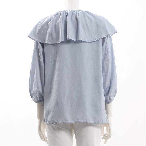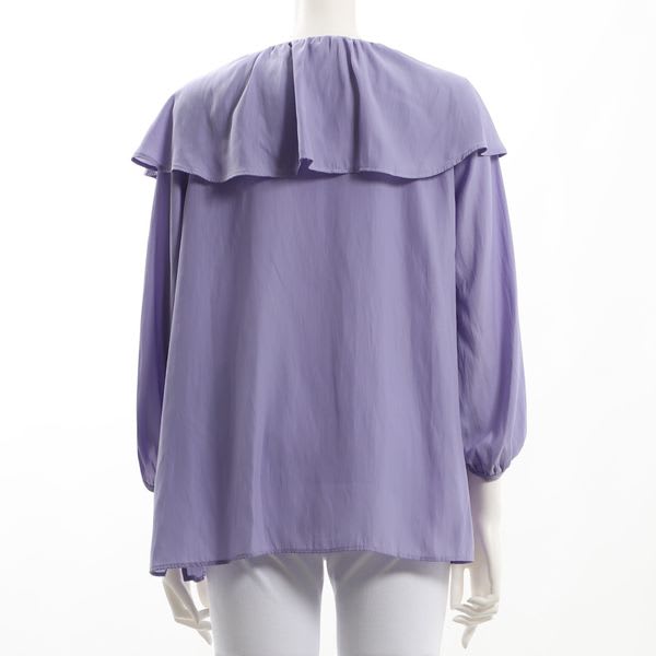 ケープ風のフリルが上品なブラウス。ハイウエストワイドパンツを合わせてエレガントな着こなしに、プリーツスカートを合わせてフェミニンな着こなしも素敵です。