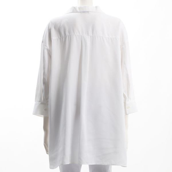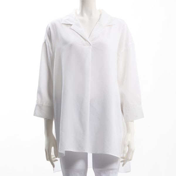 「とろみがあるのに襟元はパリッとしていて、不思議な素材感でした。着心地いいです。色もきれいな白で、爽やかに着られました。襟元のデザインやドルマンの形が今時で、着ていて楽しかったです。同梱のパンツと合わせるとマニッシュに傾くので、ヒールと合わせました。同じような色味のスリムパンツと合わせるのもとてもよかったです。」