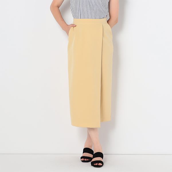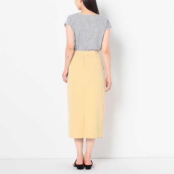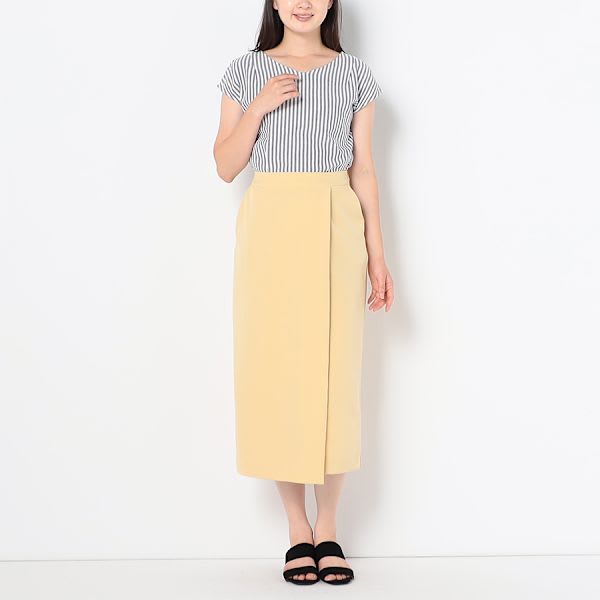 バックスリット入りのラップ風タイトスカートです。ボーダー柄カットソーとスニーカーを合わせてカジュアルに、とろみブラウスとパンプスを合わせて上品なスタイルもいいですね。
