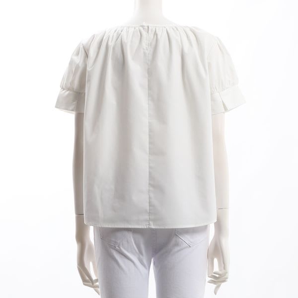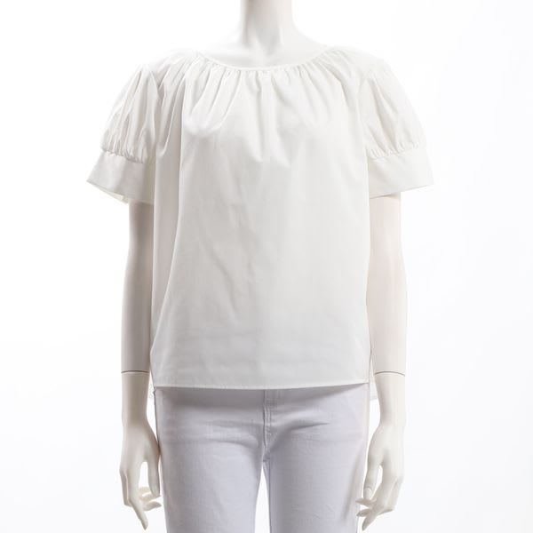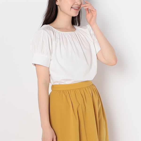 ネックラインやお袖のギャザーデザインがポイントのブラウスです。フレアスカートを合わせてフェミニンスタイルに、デニムパンツを合わせてカジュアルなスタイルもいいですね。
