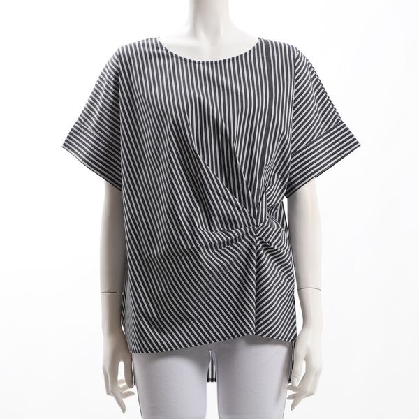 ストライプ柄タックデザインブラウス