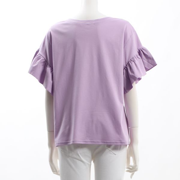お袖のフリルデザインがポイントのカットソーです。ワイドパンツを合わせてカジュアルな着こなしや、タイトスカートを合わせてレディライクな着こなしも◎ですね。