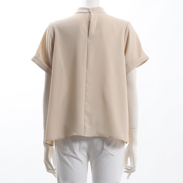 ボウタイ風デザインのタックネックブラウス。テーパードパンツを合わせてオフィススタイルに、フレアスカートを合わせてお出かけスタイルも素敵です。