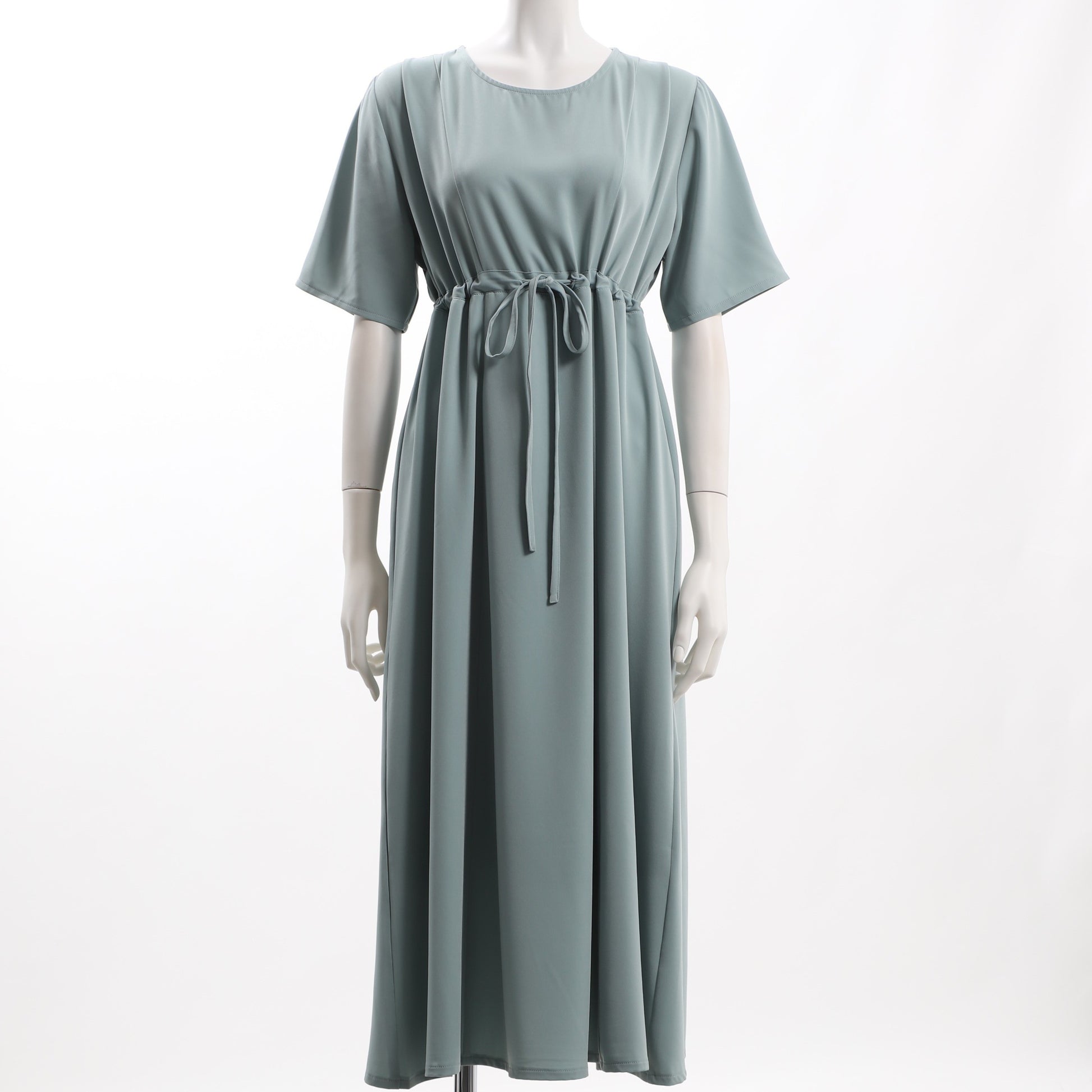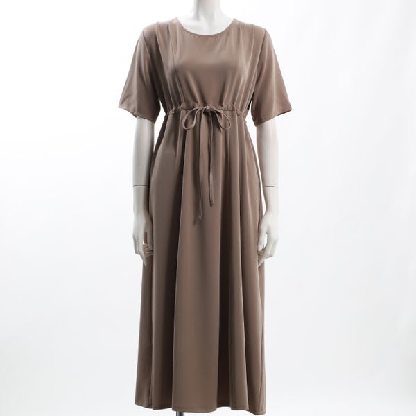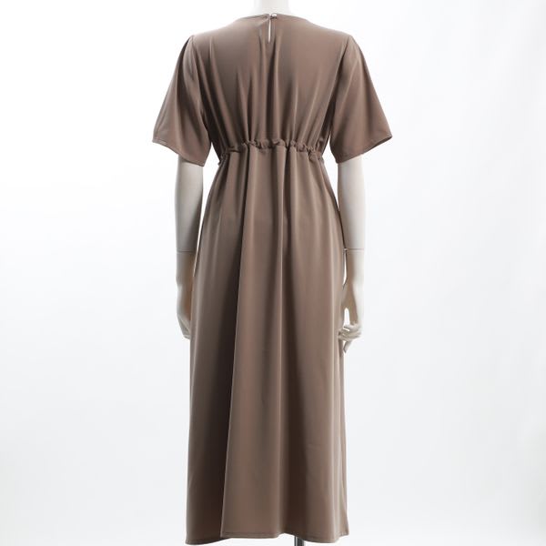 ウエストドロストデザインラウンドネックワンピース