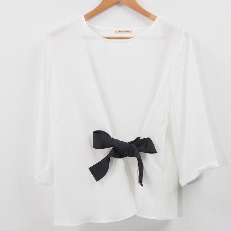 ウエストのリボンがポイントのプルオーバーは、シンプルなボトムスに合わせるだけでも〇 オンにはテーパードパンツやジャケット、華奢なパンプスを合わせて、オフにはさらっとデニムに合わせてカジュアルに着こなすのも◎