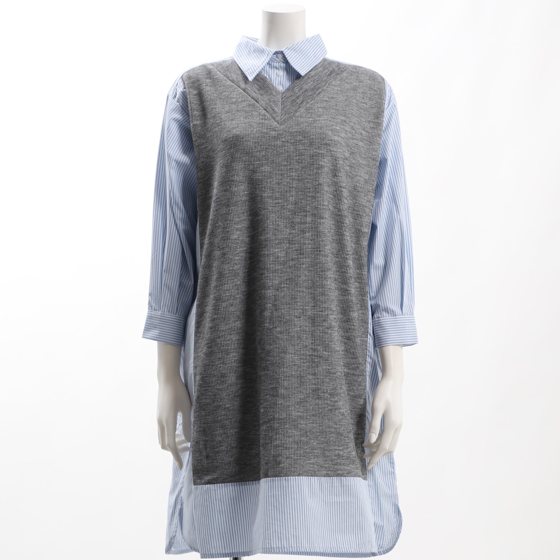 ロングシャツにニットベストをレイヤードしたかのようなデザインが特徴的なワンピースです。ハンドバッグにパンプスできれいめな着こなしに。キャンパス地のトートバッグにスニーカーでカジュアルな雰囲気も素敵ですね。